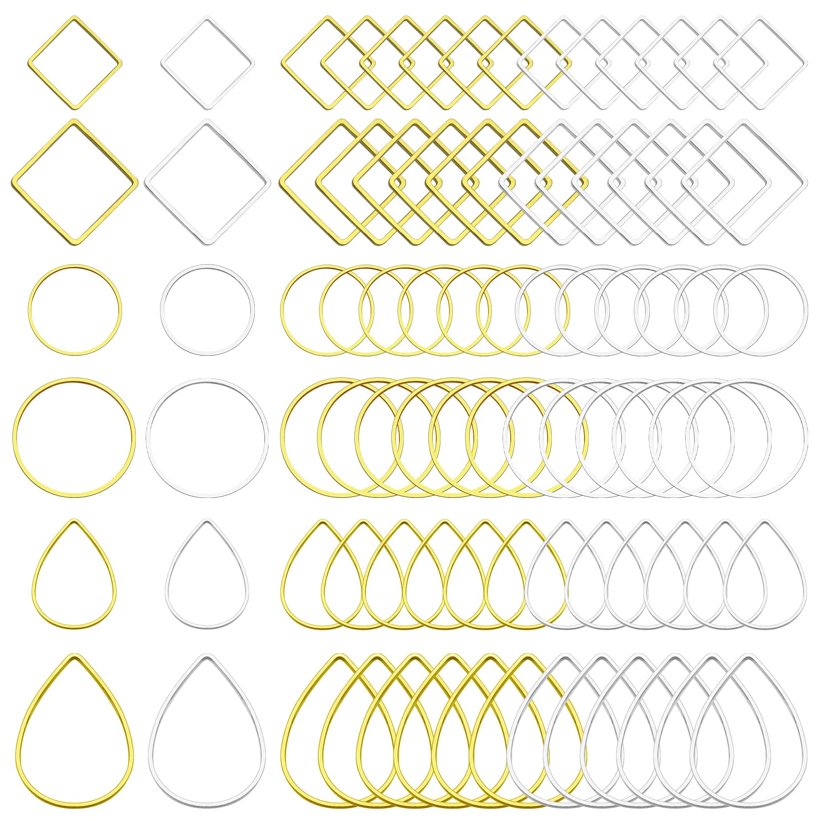 120Pcs Earring Hoops for Jewelry Making,Earring Finding Hypoallergenic Earrings Beading Hoop Bulk Open Bezel Pendant Frame Teardrop Square Round Circle Earrings Making Supplies for DIY Crafts