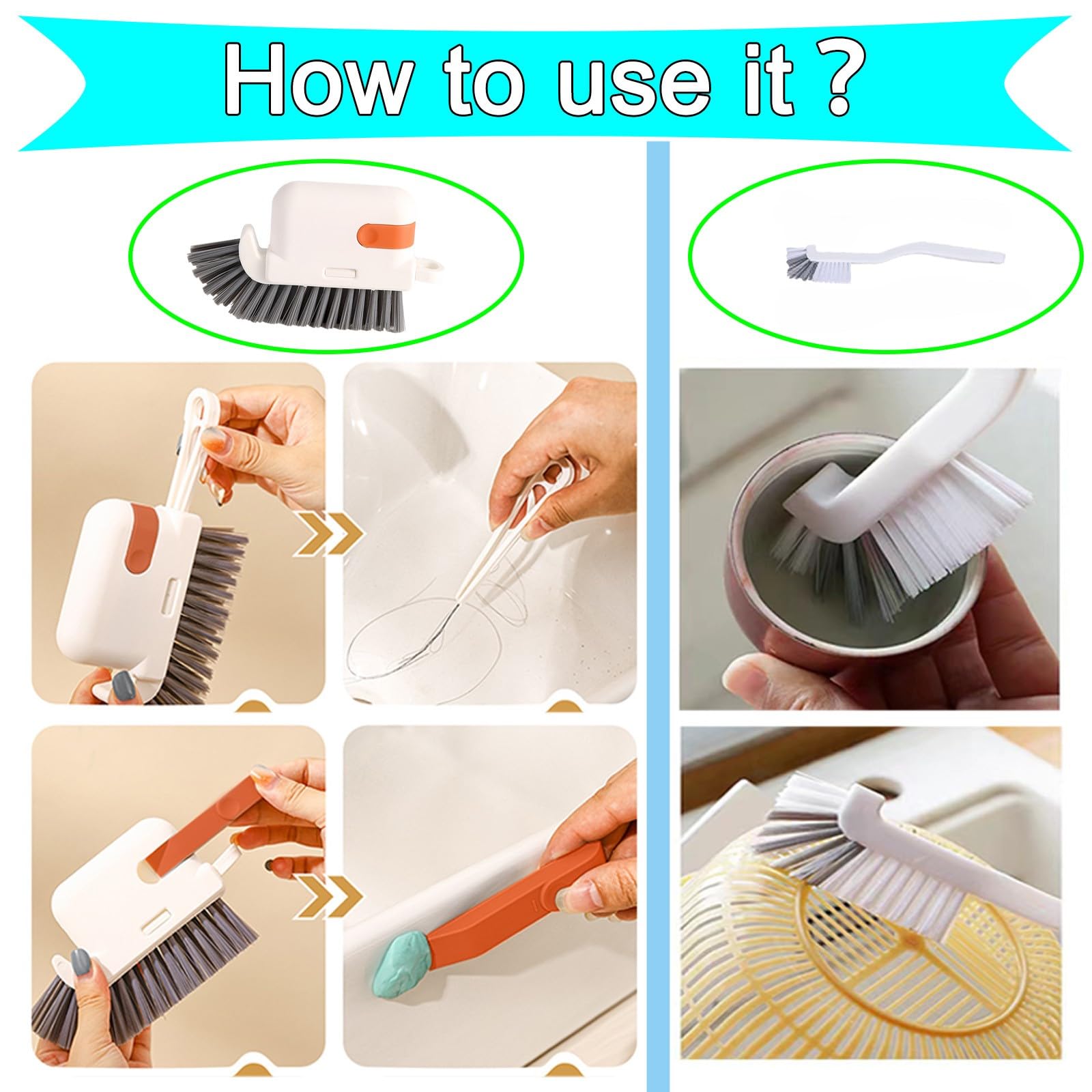 - Dual-Action Design: The handheld gap brush has a scraper end for stubborn dirt and a bristle end for loose debris. The 2-in-1 door/window brush folds for storage, with one side for gaps and the other for dust collection. The angled white brush reaches tight spots, easily removing tough stains and dirt.