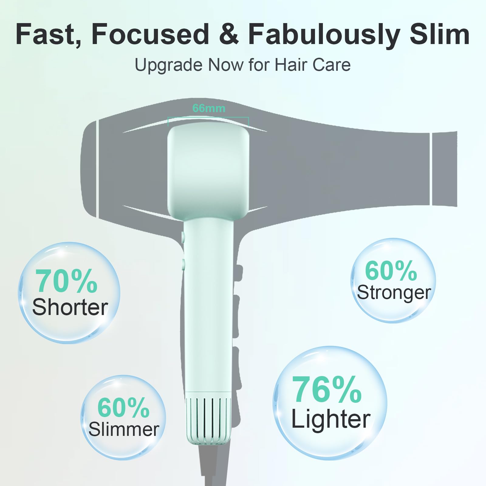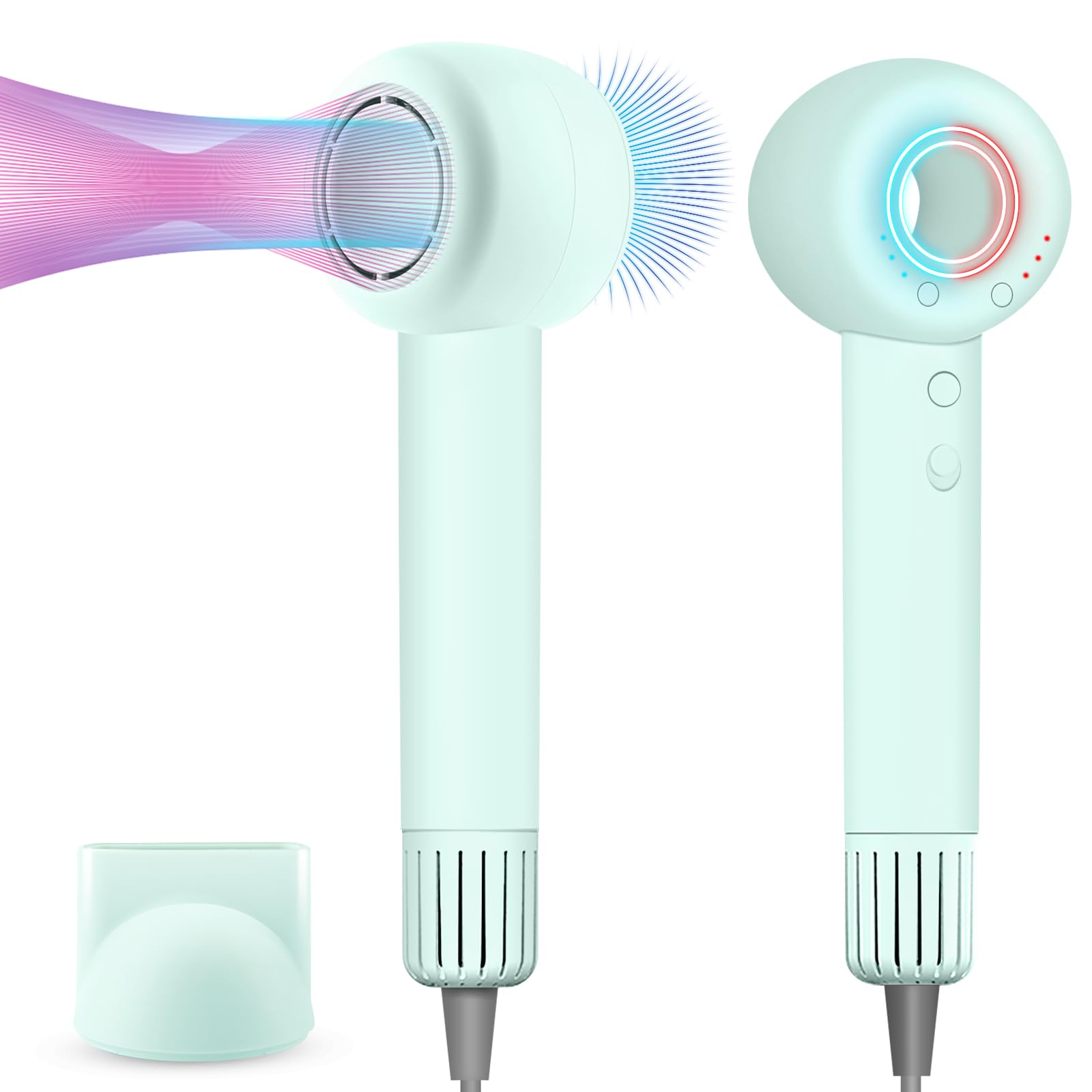 160000 RPM High Speed Hairdryer, Brushless Motor, 500 Million Negative Ionic Blow Dryer, Travel Fast Drying Hairdryer, Low Noise, Lightweight, Quiet Blowdryer with Nozzle, Home Use, Mint Green