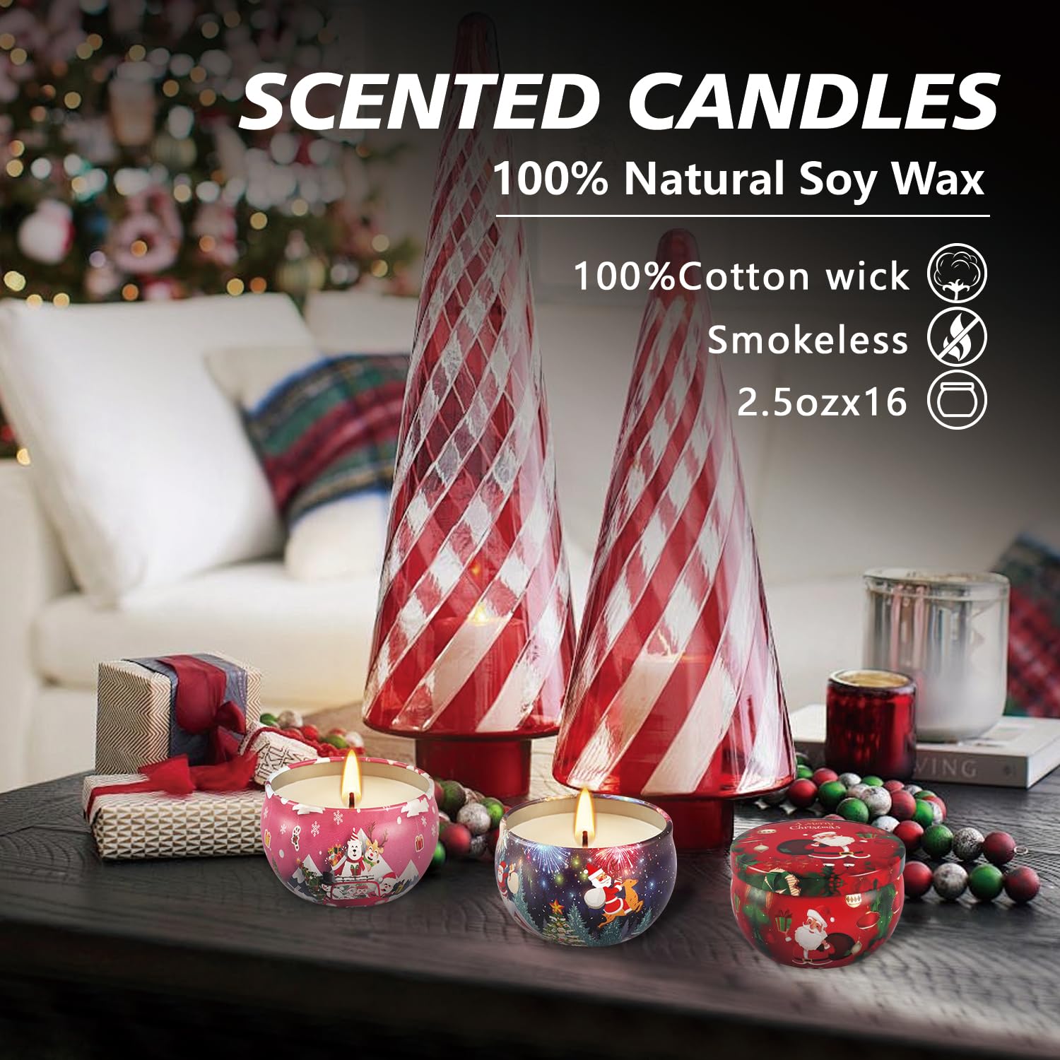16Pack Christmas Scented Candles Gift- Aromatherapy Candle-Soy Wax-Long Lasting Burn time, Christmas Thanksgiving Gifts for Women,Home Decor