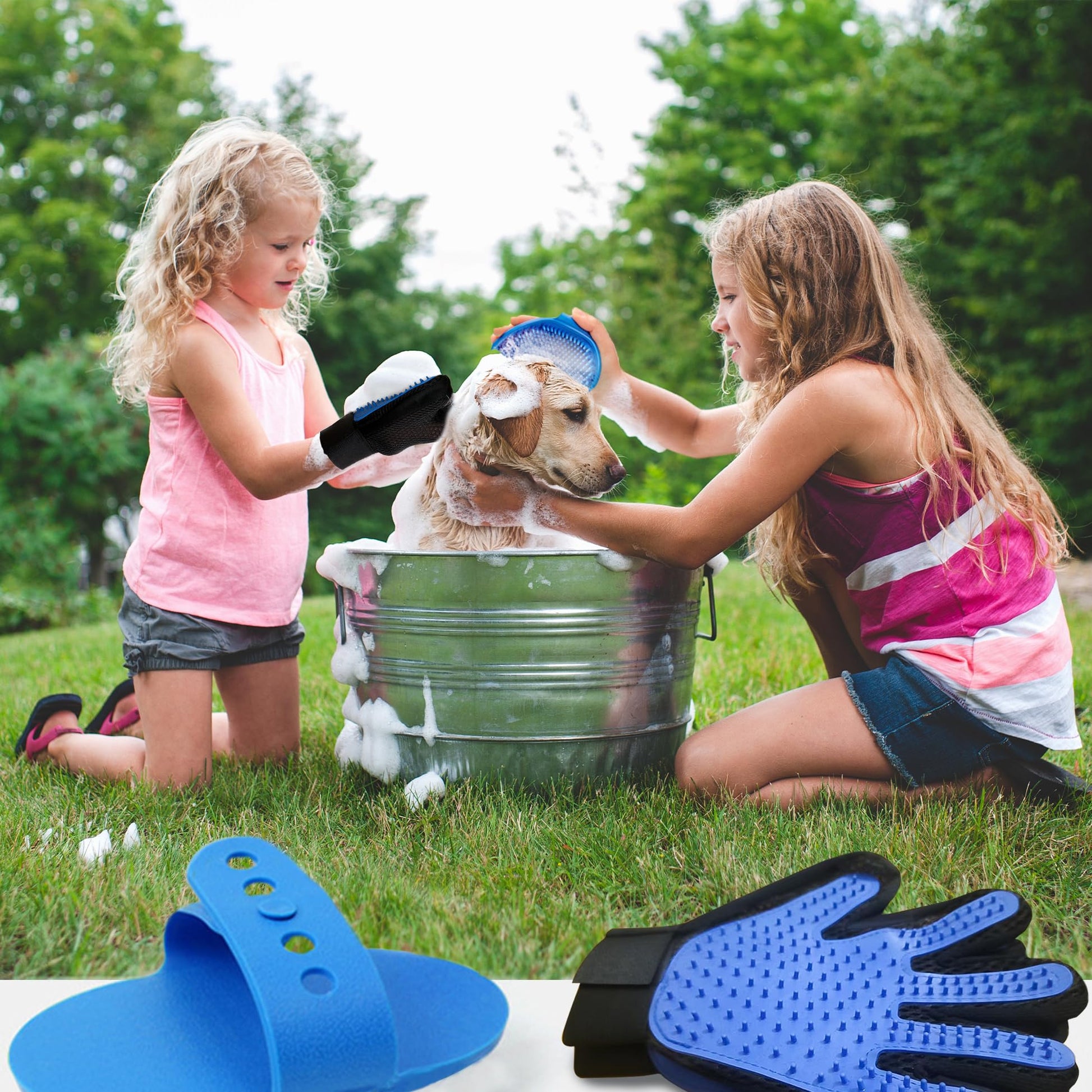 - MULTI-PURPOSE – Dog grooming gloves are effective for grooming and shedding and even bathing. Creates foam, distributes conditioner and removes loose hair and massages while bathing to help your pet reduce shedding in the home and have a shiny and healthy coat. Dog bathing gloves included trial silicone finger toothbrush gift helps you easily clean back teeth, freshens breath and protect your pet's gums.