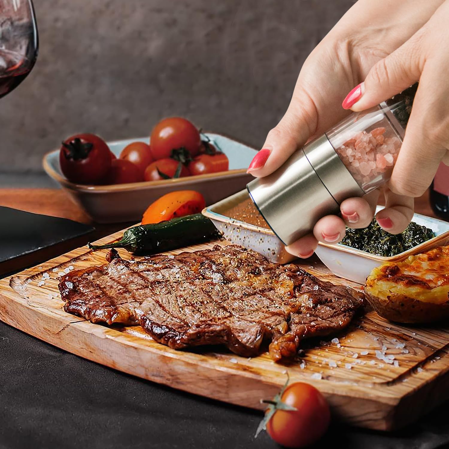 2 in 1 Salt and Pepper Grinder Stainless Steel Pepper Mill Grinder Refillable Adjustable Coarseness Mills for Sea Salt, Small Peppercorn, Black Pepper