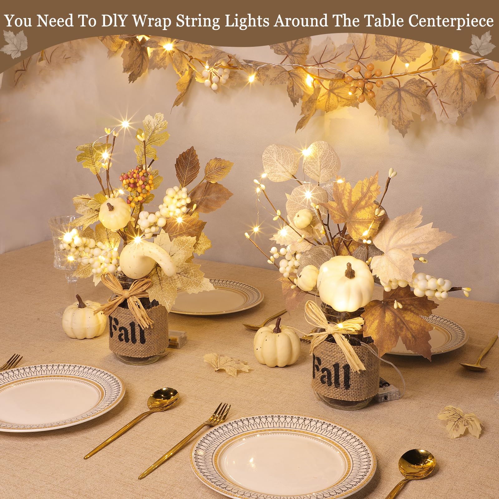 - LED String Lights with Timer: Each fall centerpieces includes a 3.3ft string of 10 warm white LEDs (2 AA batteries required, not included). With the built-in timer (6 hours on, 18 hours off), these soft lights add a glow to your fall table decorations