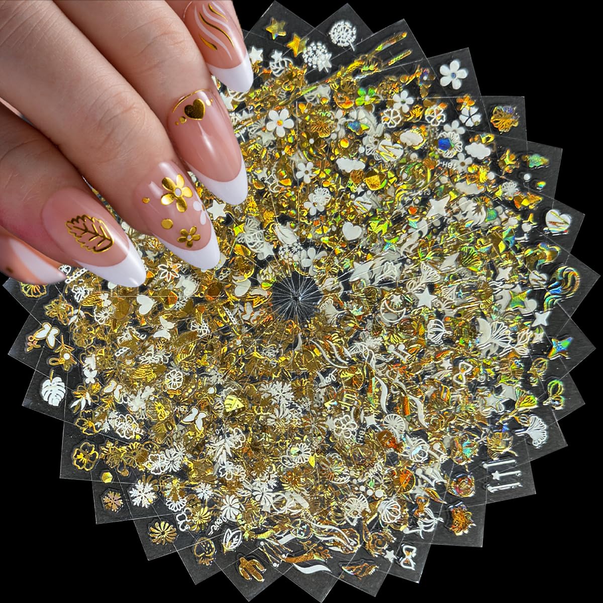 Star Nail Sticker:You will get 30 styles silver nail art stickers in one set of different silver lace hollow shapes star moon heart bow nail stickers, satisfy all your love for beautiful nails, a vari