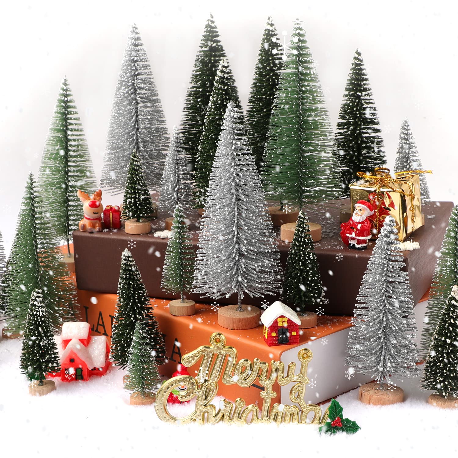 30Pcs Christmas Decorations Mini Christmas Trees, Artificial Christmas Tree Bottle Brush Trees with Wooden Base for Christmas Decor Christmas Party Home Table Craft