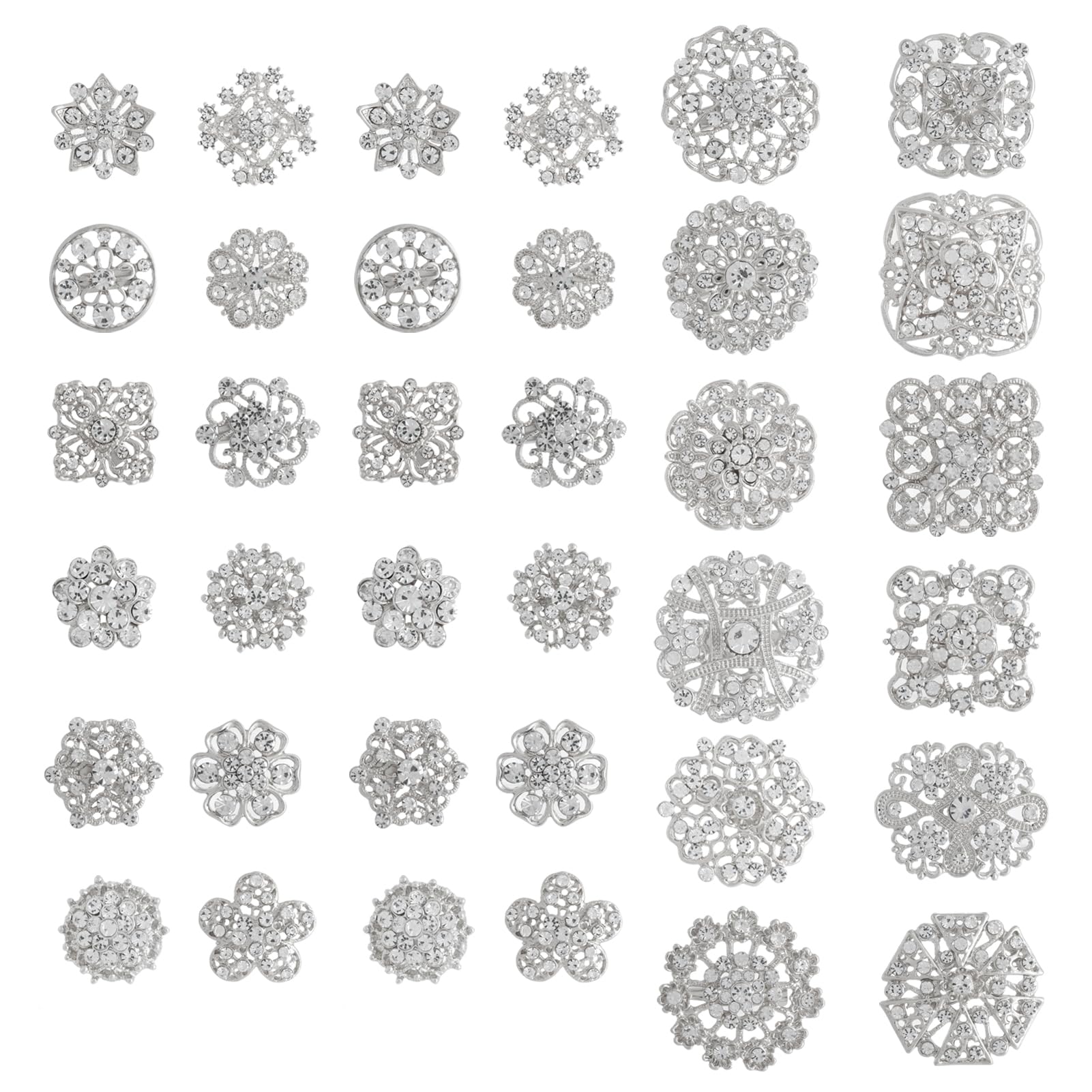 36 Pieces Wedding Bouquet Brooches for Women Fashion, Rhinestone Bulk Flower Brooch Pins for Crafts