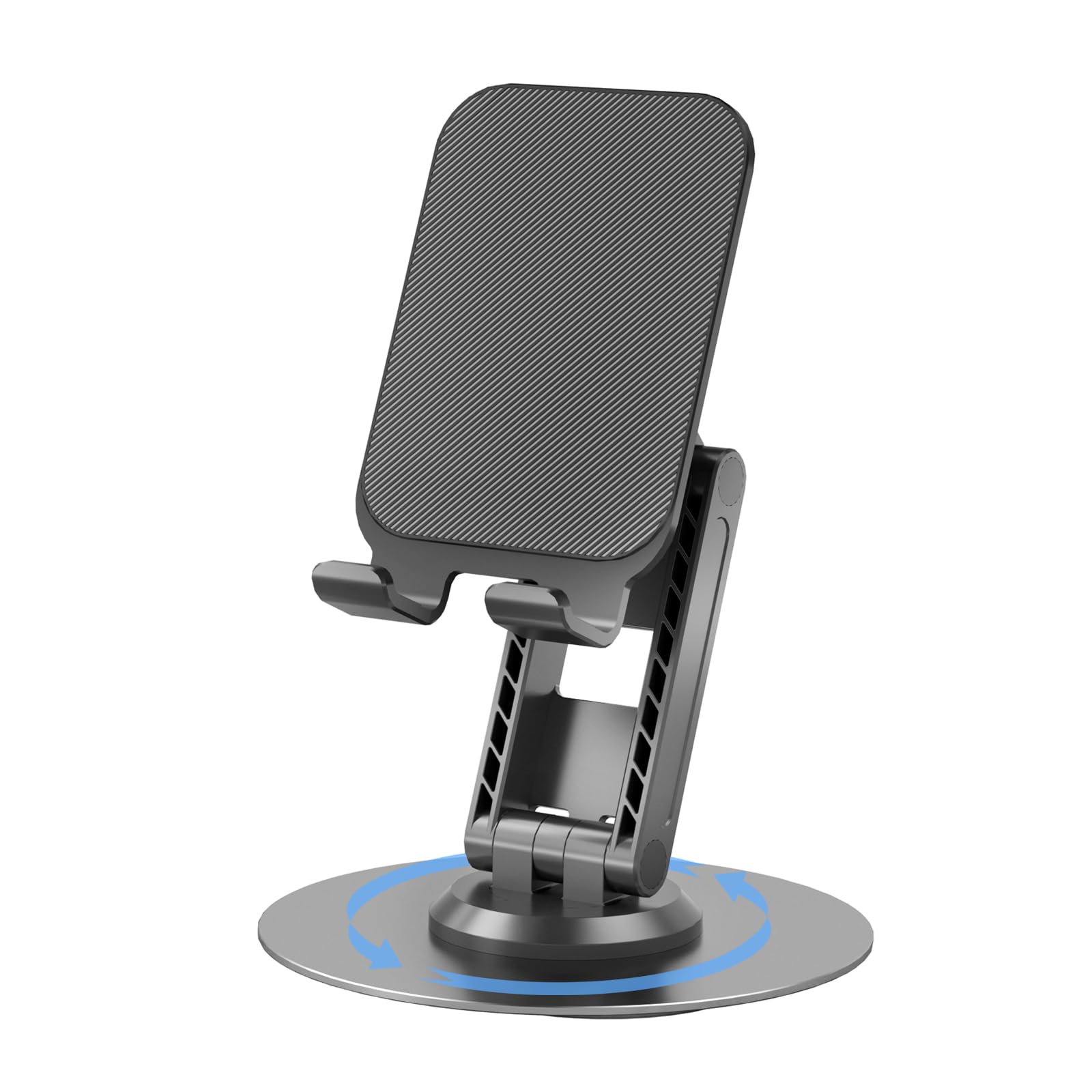 360°Rotating Phone Holder for Desk, Fully Foldable Cell Phone Stand for Office & Home, Angle & Height Adjustable Tablet Stand for All Smartphones, iPhone, Switch,Tablet 4.6-12.9'', Black