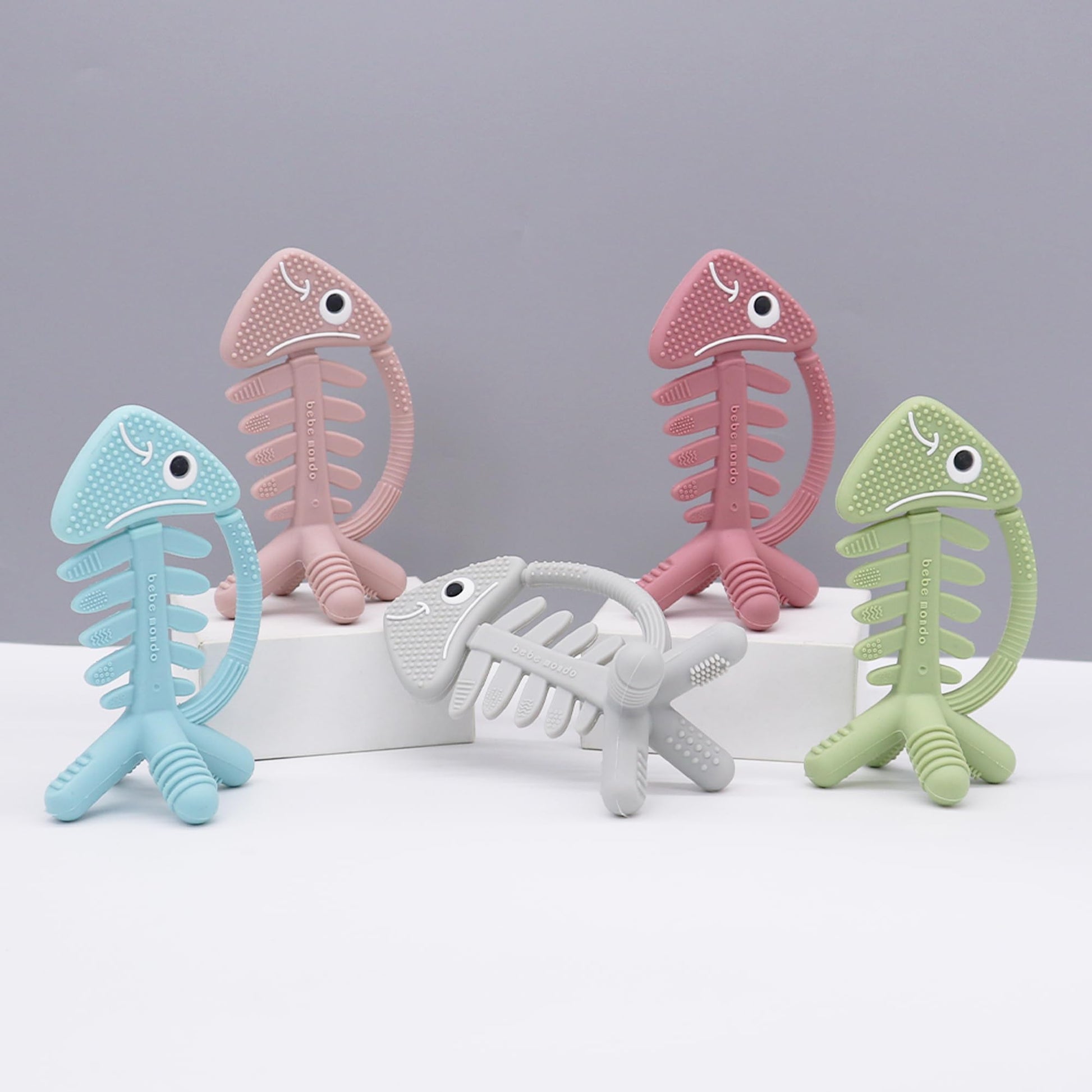 - [Expertly Designed for Safety and Comfort]: Bebe Mondo Massaging Baby Teether, a creation by specialists in toy design and Pediatric Dentists equipped with recent pediatric dentistry knowledge.This 3D fish silicone teether features a double-sided design, including fish fins, head, mouth, tails, and bones, all embedded with varied textures.Adhering to rigorous safety standards (ASTM, CPC), our American brand ensures utmost safety and quality.100% safe.No odd smell.dishwasher safe,freezer safe.