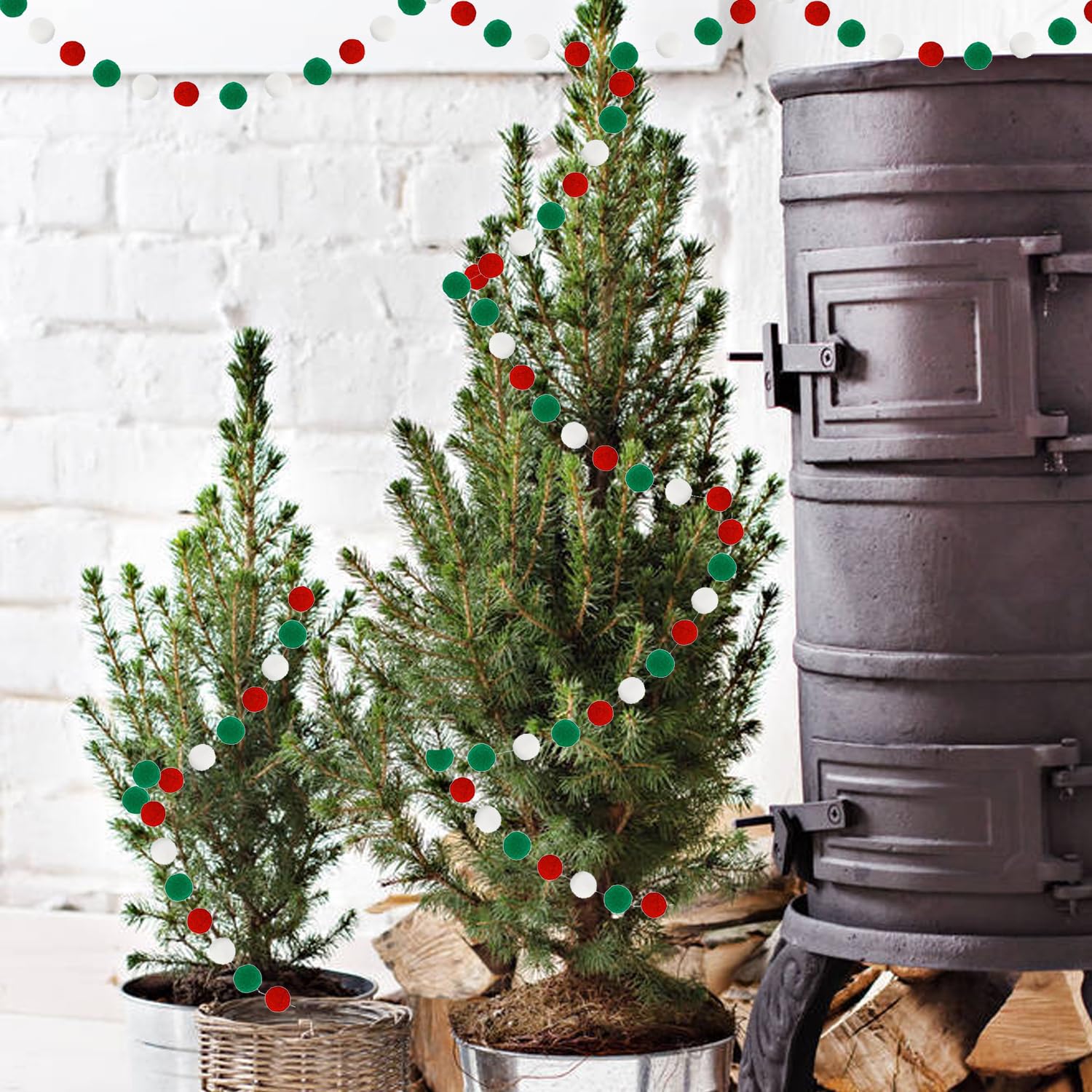 - FELT POM POM BALLS POLYSTYRENE PREMIUM QUALITY: Each red green white pom pom garland is 6.57 ft/2m long, and the diameter of each Christmas pom pom is 1 inch/2.5cm. All red green white pompom can easily move on the ornaments without knotting, and you can easily hang the Christmas garland decor anywhere according to your own preferences and needs, such as ceiling, wall, Christmas tree, fireplace, stair railing and more, creating a strong festivasl atmosphere for your home