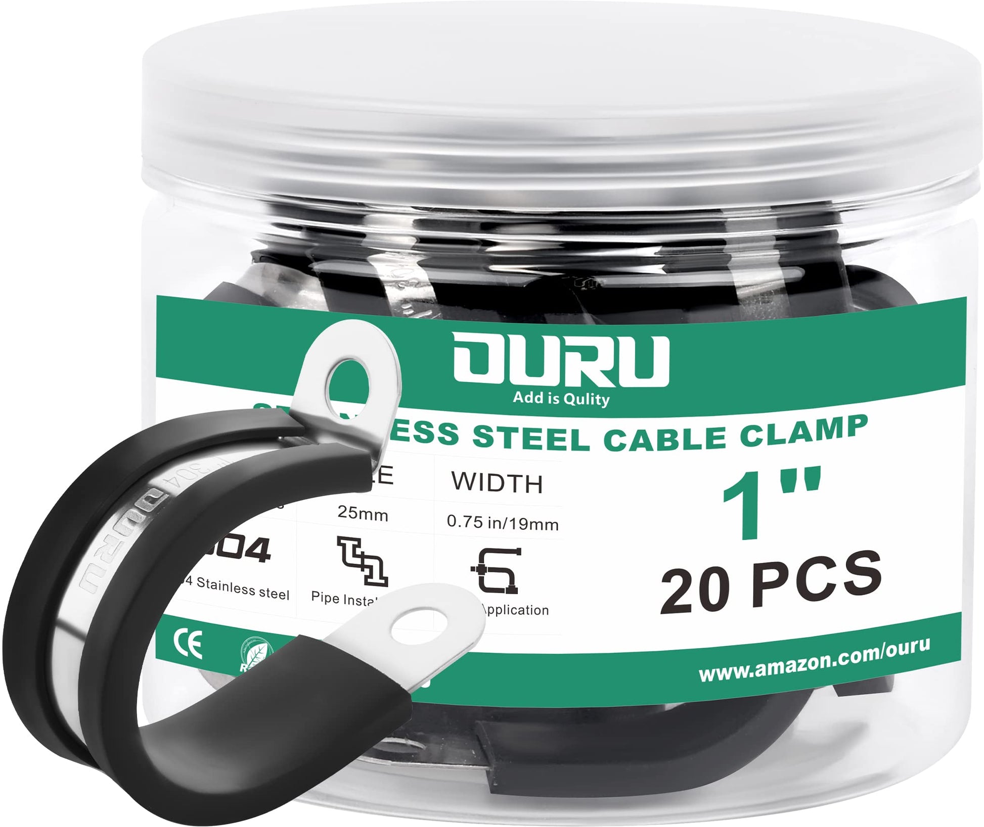 56PCS Cable Clamps Assortment Kit,6 Sizes—1/4" 5/16" 3/8" 1/2" 5/8" 3/4" Stainless Steel Rubber Coated Cushioned Insulated Cable Clamp,Automotive Cable Wire Clamps,Pipe Clamps,Metal Clamp