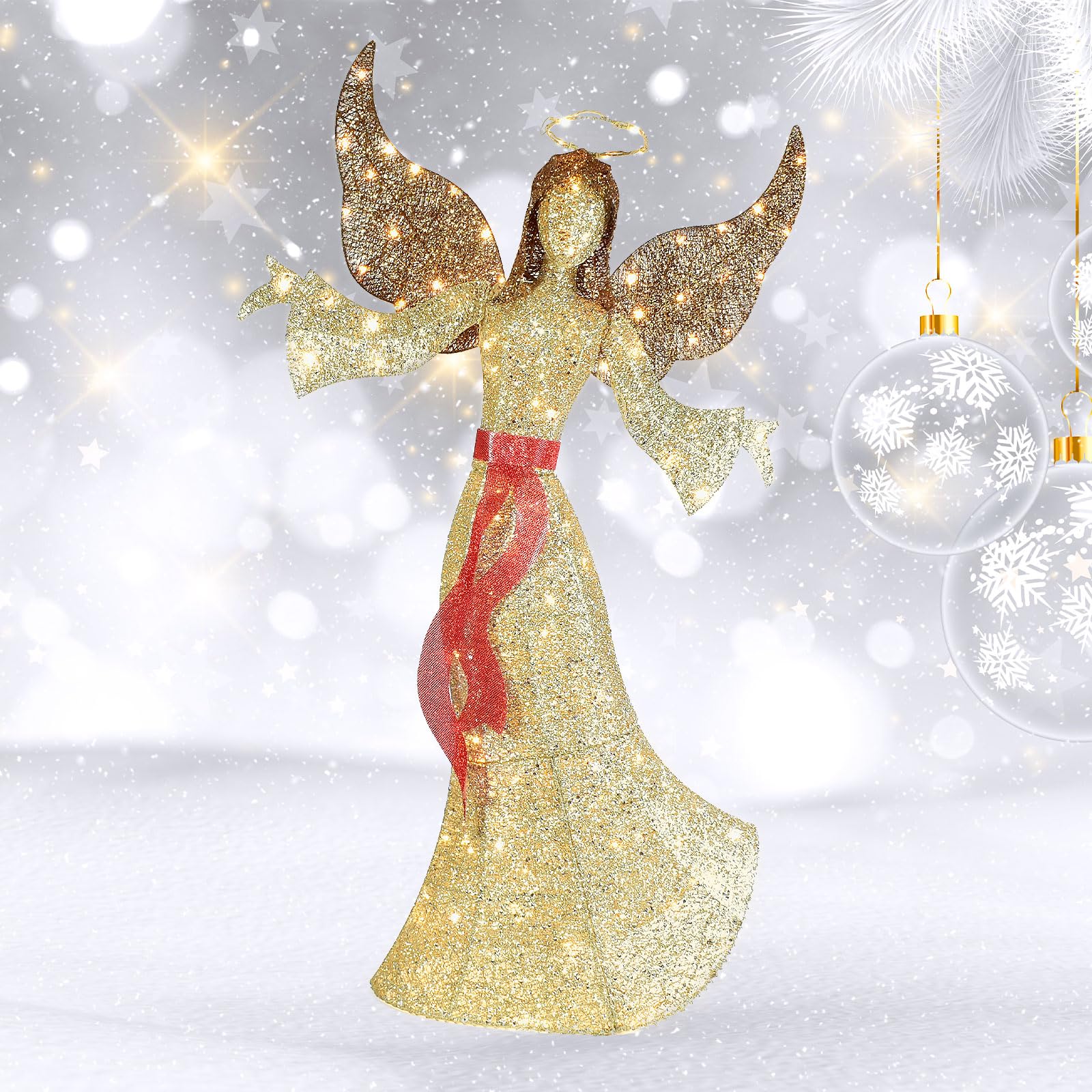 - ๐ ๐5-Foot Angel Figure for Christmas: Angel outdoor christmas decor elevate your holiday dรฉcor with this elegant and attention-grabbing 5-foot tall angel figure. Adorned with halo, and iconic wings, it's the perfect addition to enrich your Christmas display.