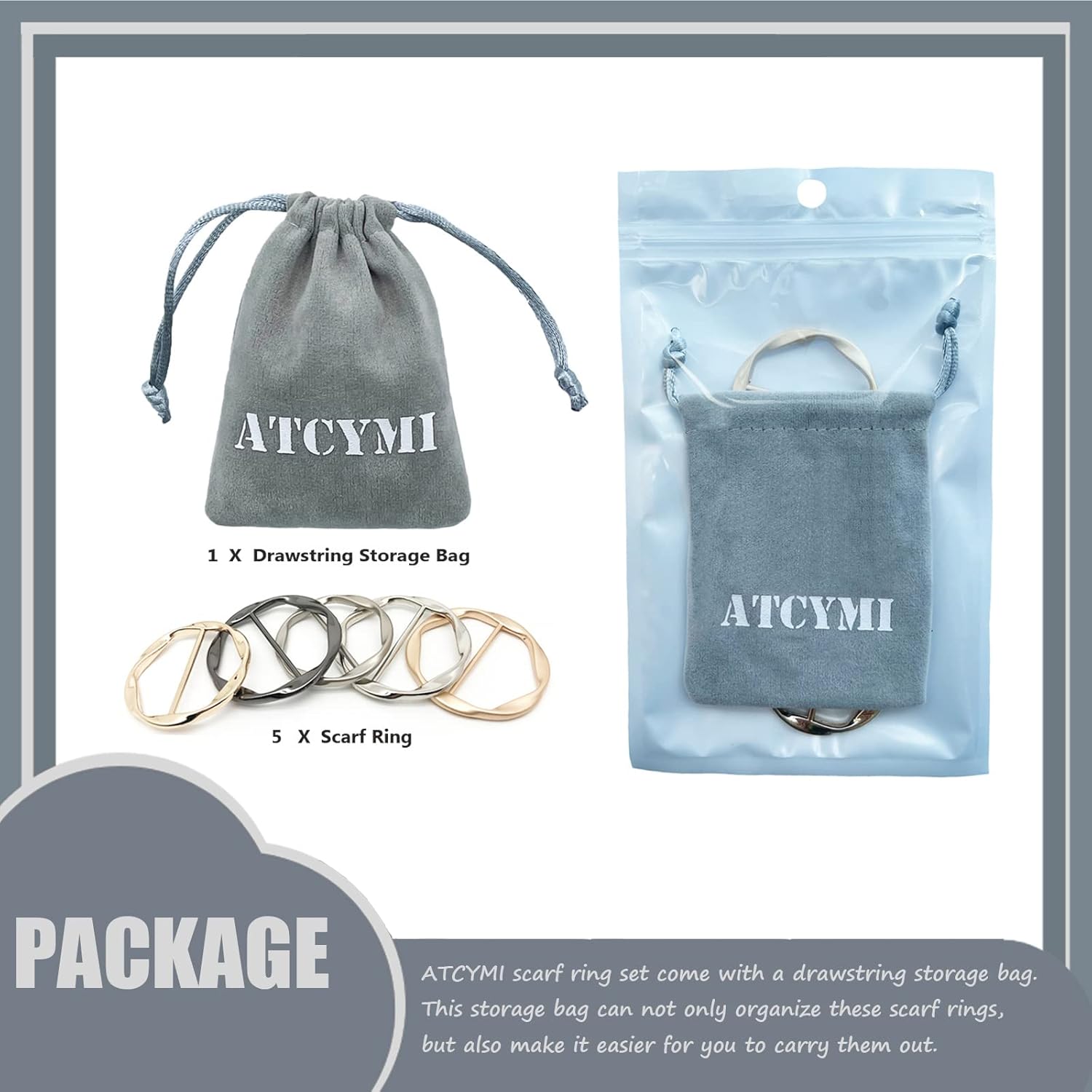5PCS Silk Scarf Ring Clip T-shirt Tie Clips for Women Fashion Metal Round Circle Clip Buckle Clothing Ring Wrap Holder with 1 Storage Bag