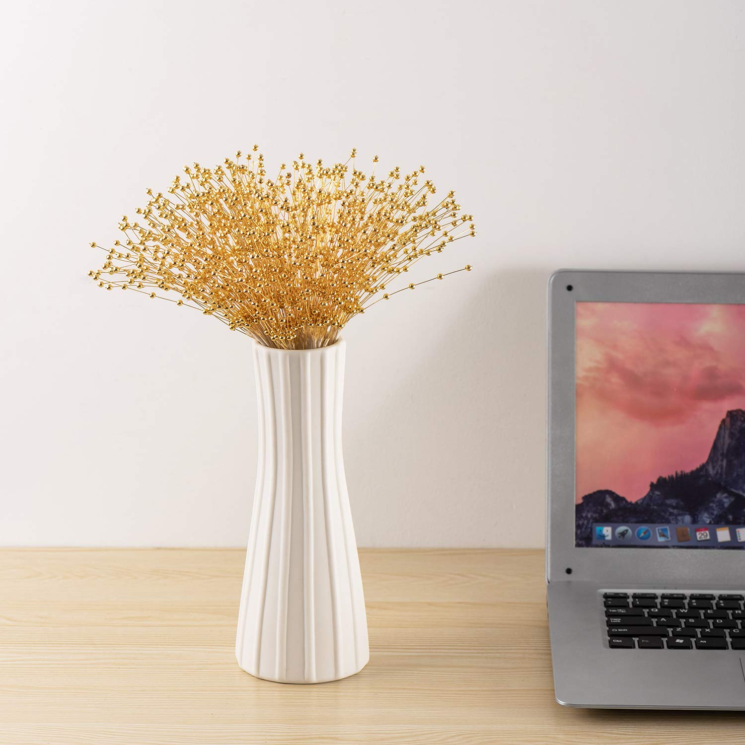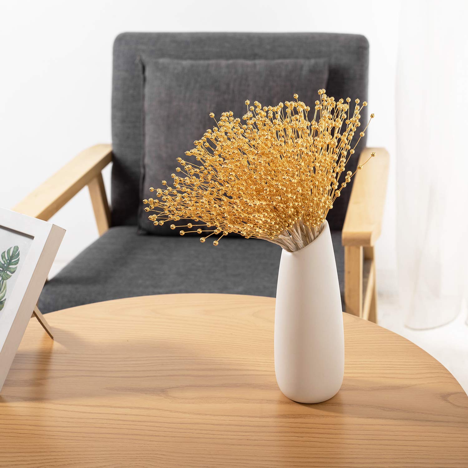 60 Pieces Pearl Stick Stems Bouquets, 4mm Bead String Garland Beaded Spray Filler Floral Arrangements Tree Picks Wedding Party Decoration (Gold)
