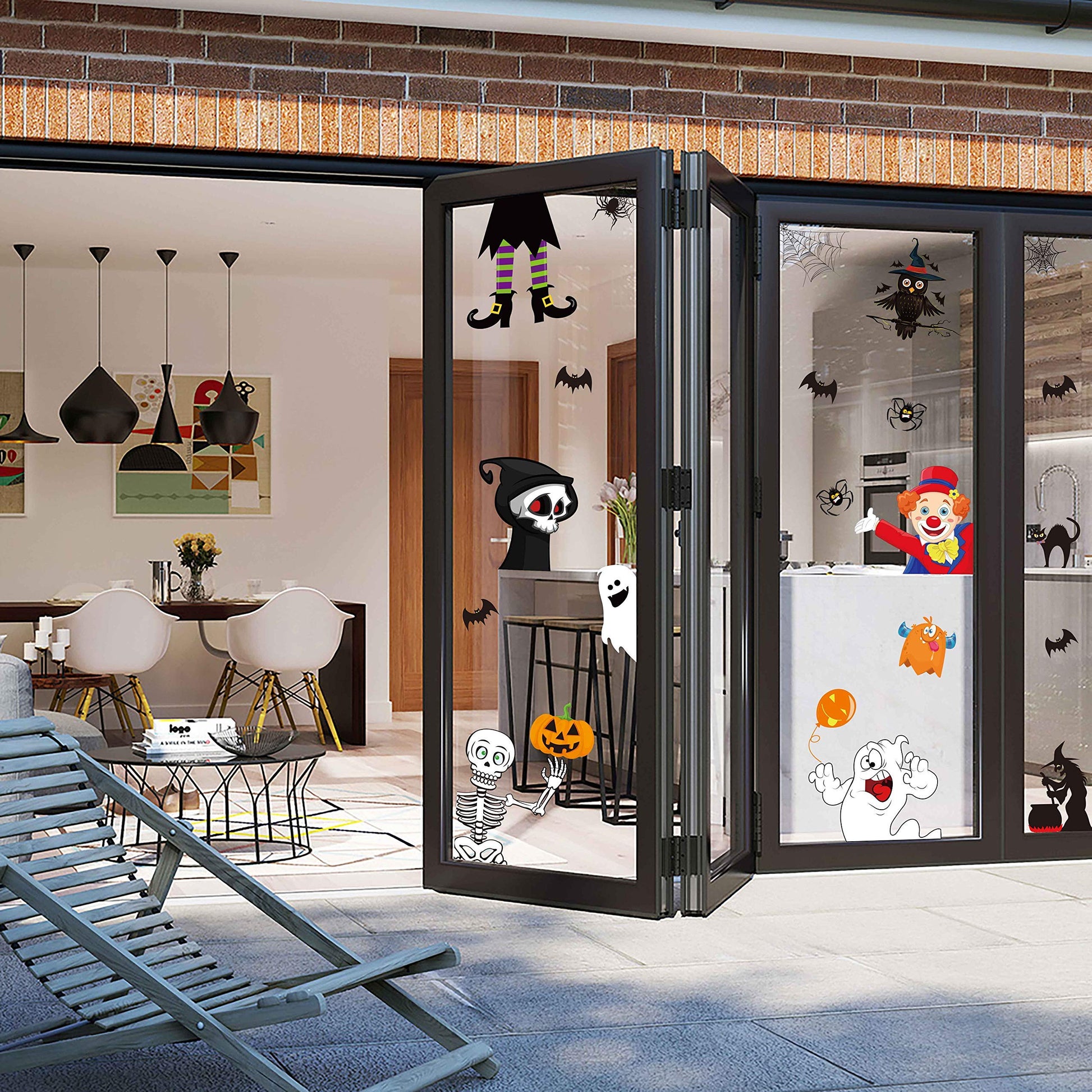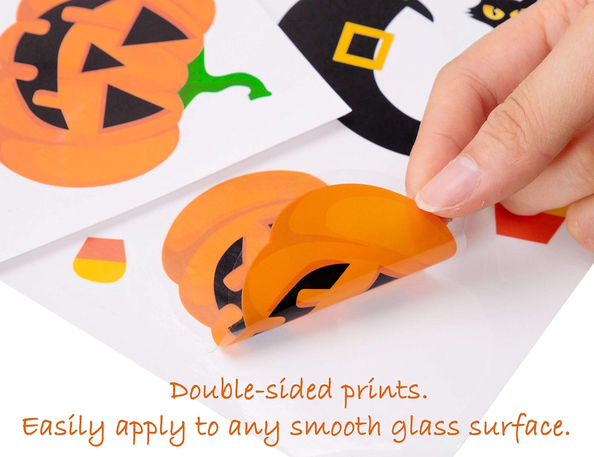 - Package Includes: 625PCS assorted Halloween window clings, 12 sheets included; They have various designs like ghost, skeleton, witches, bats, spiders, monsters, pumpkins, black cat, etc