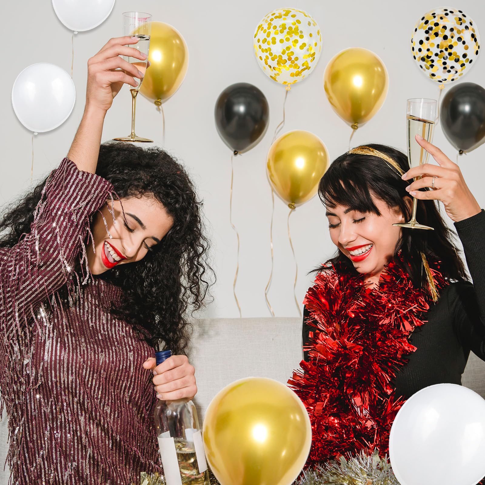- 【Easy To Use】Black gold white latex balloons and confetti balloons can be filled with air, helium and even water. Please do not over inflate the balloons to avoid bursting. If you have any questions about our balloon set, please contact us at once .