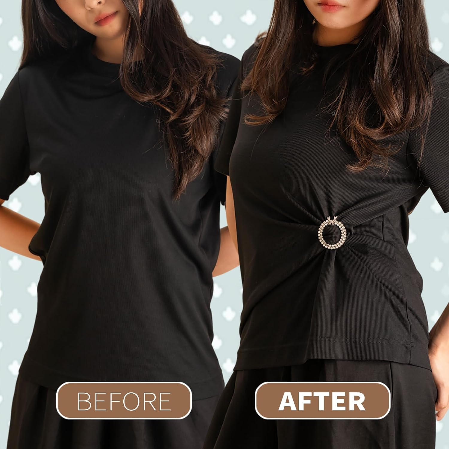 8 Pack Scarf Ring Clip,Shirt Clips for Women Clothing,Fashion Metal Shirt Ties Clips for Women, Cinch Clips for Loose Clothes Corner Knotted Button with 1 Gift Box Packing