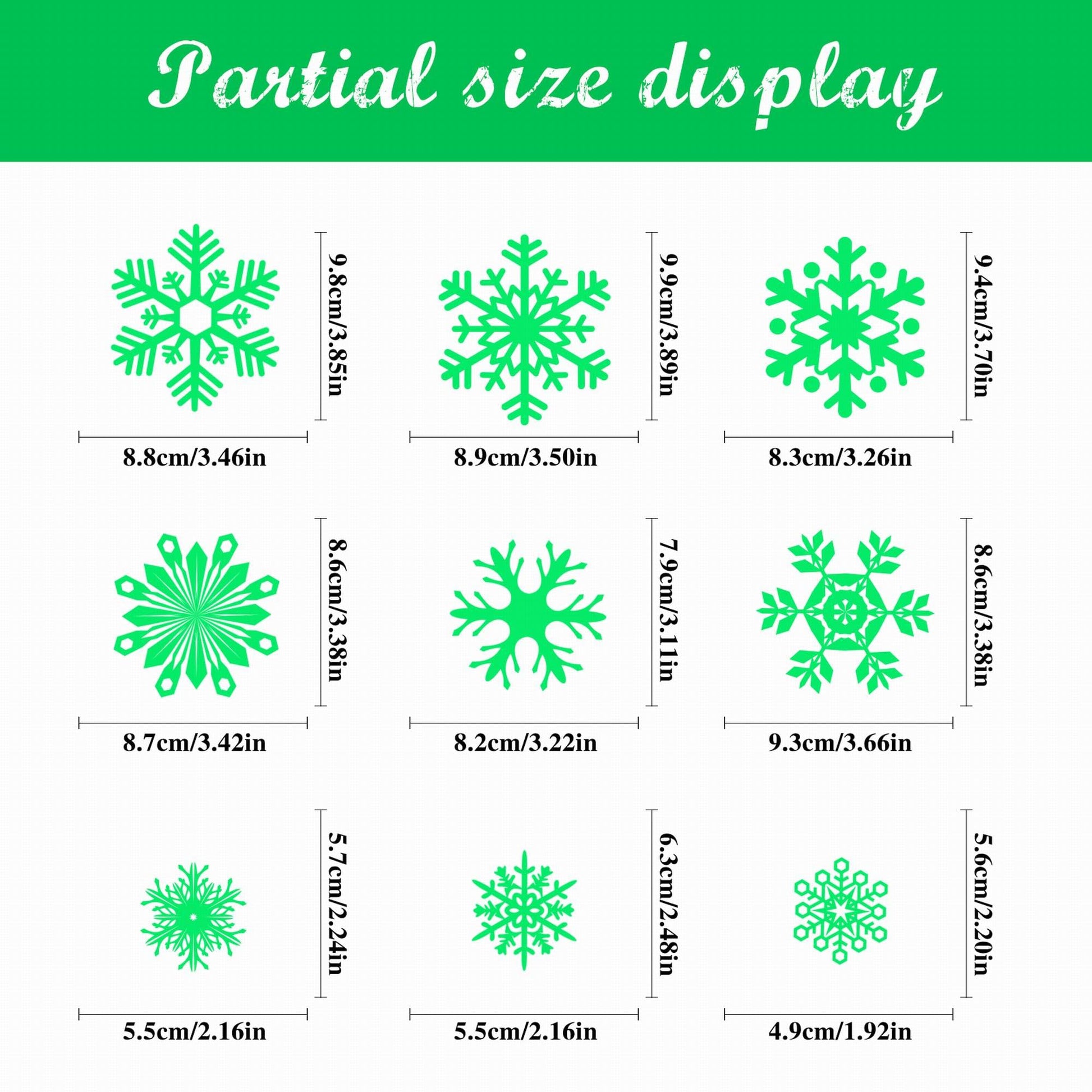 Details: 1.Glow in The Dark Party Supplies: package includes 93pcs 9 sheets snowflake window clings each sheet size 11.7x7.8inch meet your DIY needs.