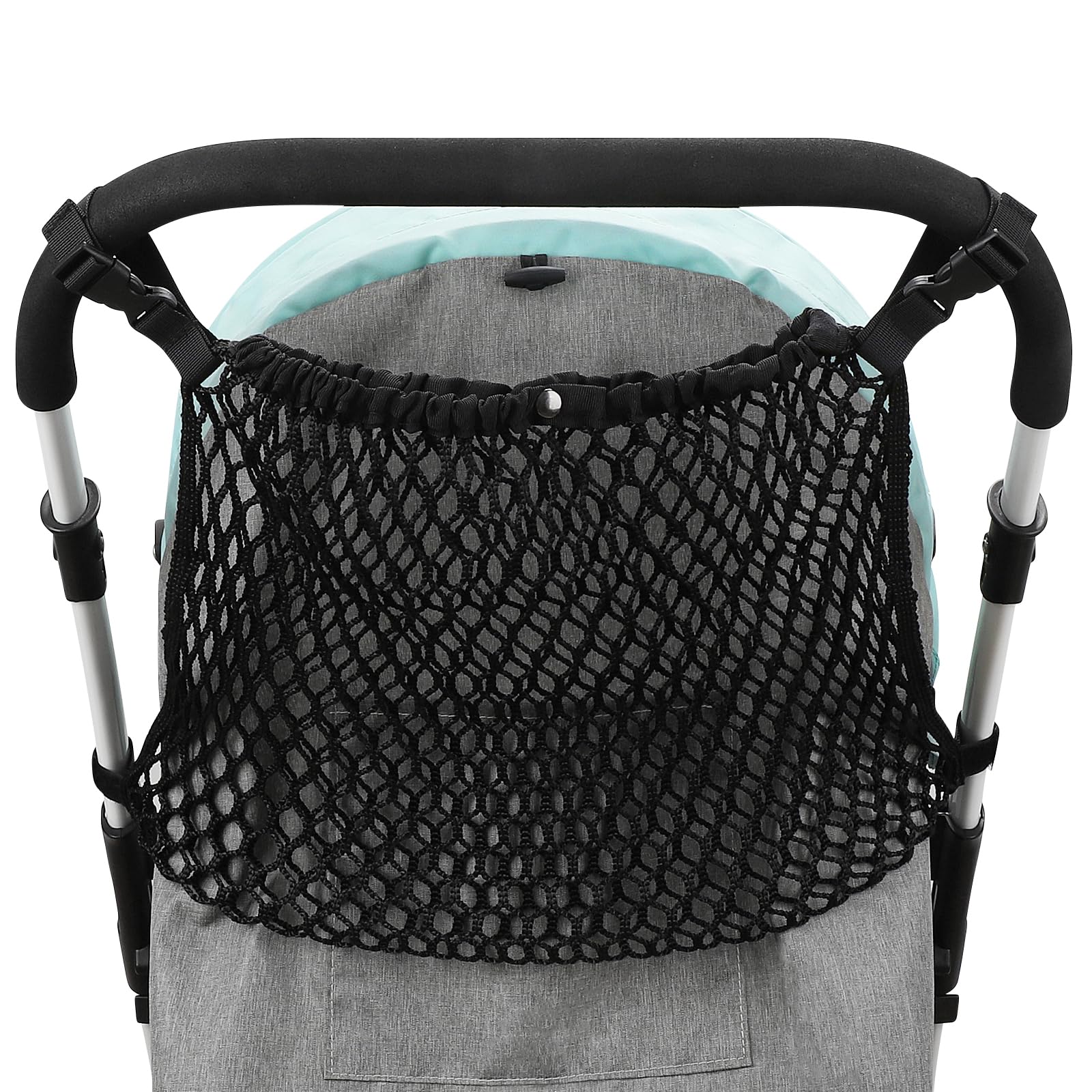 - This stroller net bag is made of durable 300D polyester fabric, adjustable lanyard and Velcro. Lightweight (Weight approximately 4.76 ounces); Elastic (It can extend up to 21.65 inches); Not easily damaged (hold up to 11 pounds of weight).