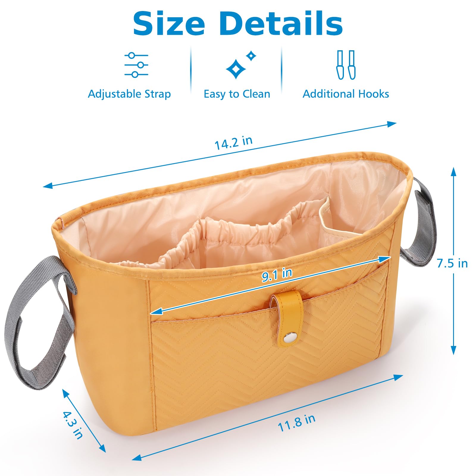 - Waterproof Material: This baby stroller caddy bag is made of high-quality materials, durable and wear-resistant. And it is waterproof, which can effectively protect the items inside.