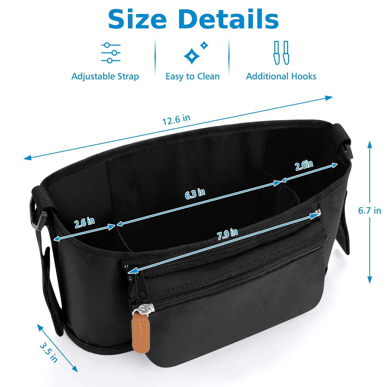 - Structured Stroller Organizer: This stroller caddy features an internal partition system that provides multifunctional compartments for efficient organization. Arrange all items neatly, making it easy to find and reach.