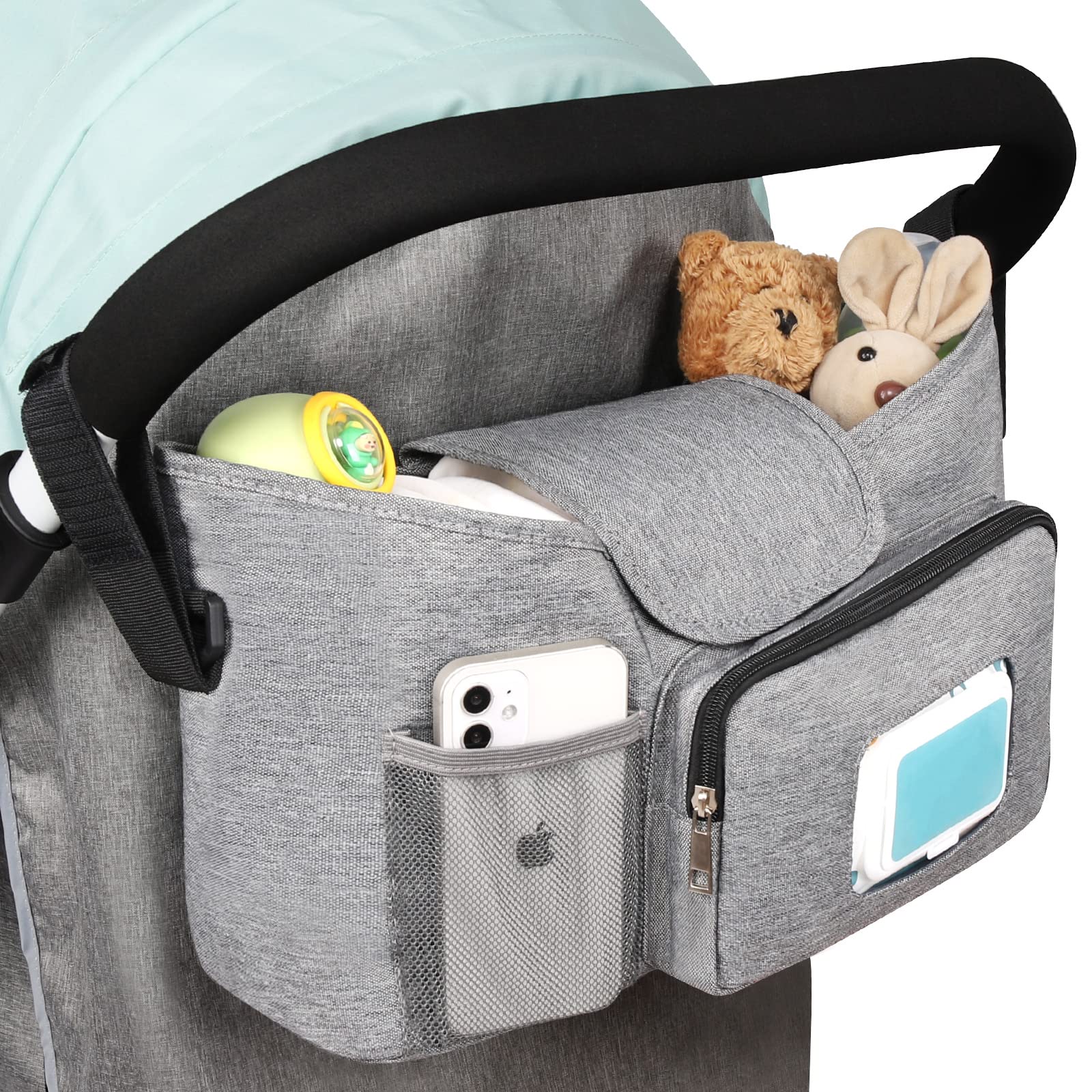 Accmor Universal Stroller Organizer with Insulated Cup Holder, Stroller Caddy Bag Accessories, Stroller Cup Holder Organizer for Uppababy Baby Jogger Britax Stroller, Grey