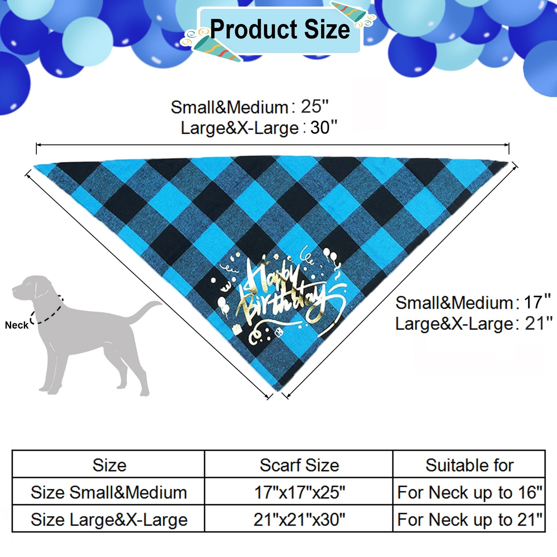 - Multi Size Bandana: Size Small&Medium Scarf fits necks up to 16'', Size Large&X-Large Scarf fits necks up to 21''. The hat for size x-large is bigger and taller, more suitable for large dogs. Please measure your dog's neck girth, and leave room to tie out