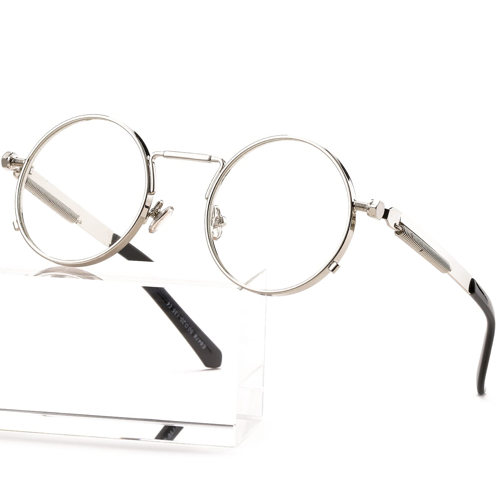 AIEYEZO Round Steampunk Sunglasses Trendy Retro Circle Glasses Gothic Metal Frame 100% UV Blocking Lens