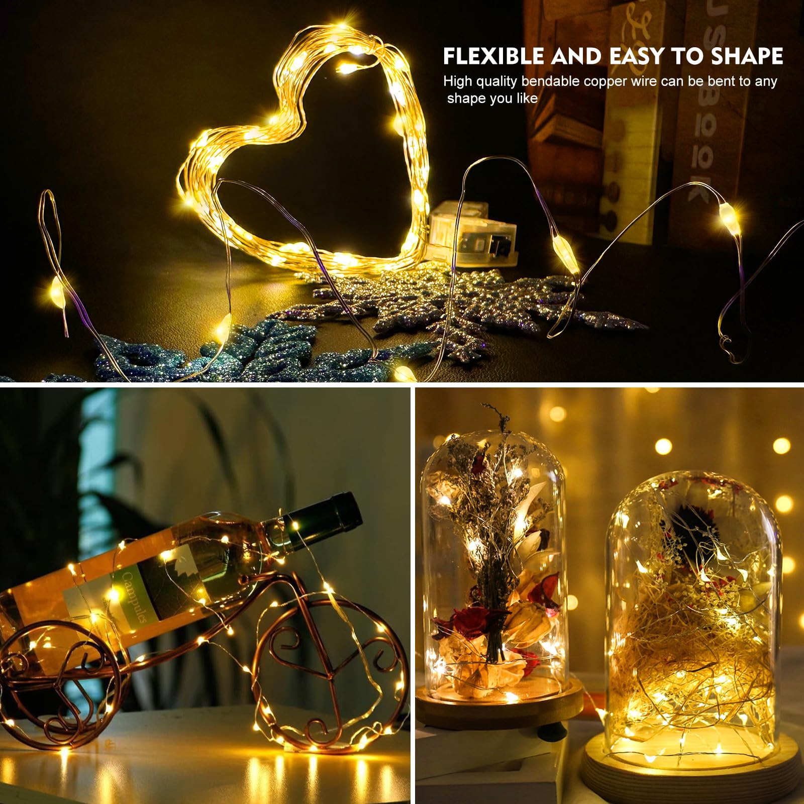 - Easy to DIY: The fairy lights are made of flexible copper wire material,so they can be easily bent and twined around Christmas trees, flowers,gift boxes,glass jar, and easy to shape,allowing you to DIY for crafts