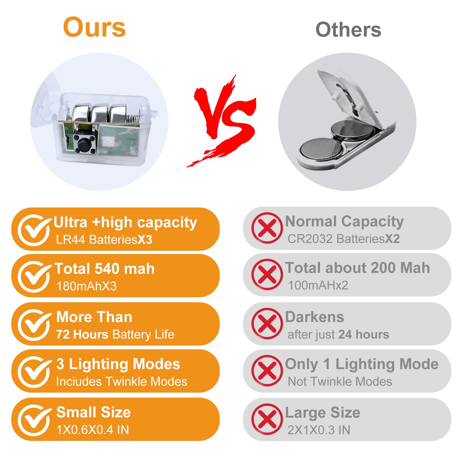 - Long Service Time: The twinkle lights are powered by 3 LR44 batteries; large battery capacity ensures more than 72 hours long-lasting service time; They are lightweight but durable, so you can take them anywhere to use as you want