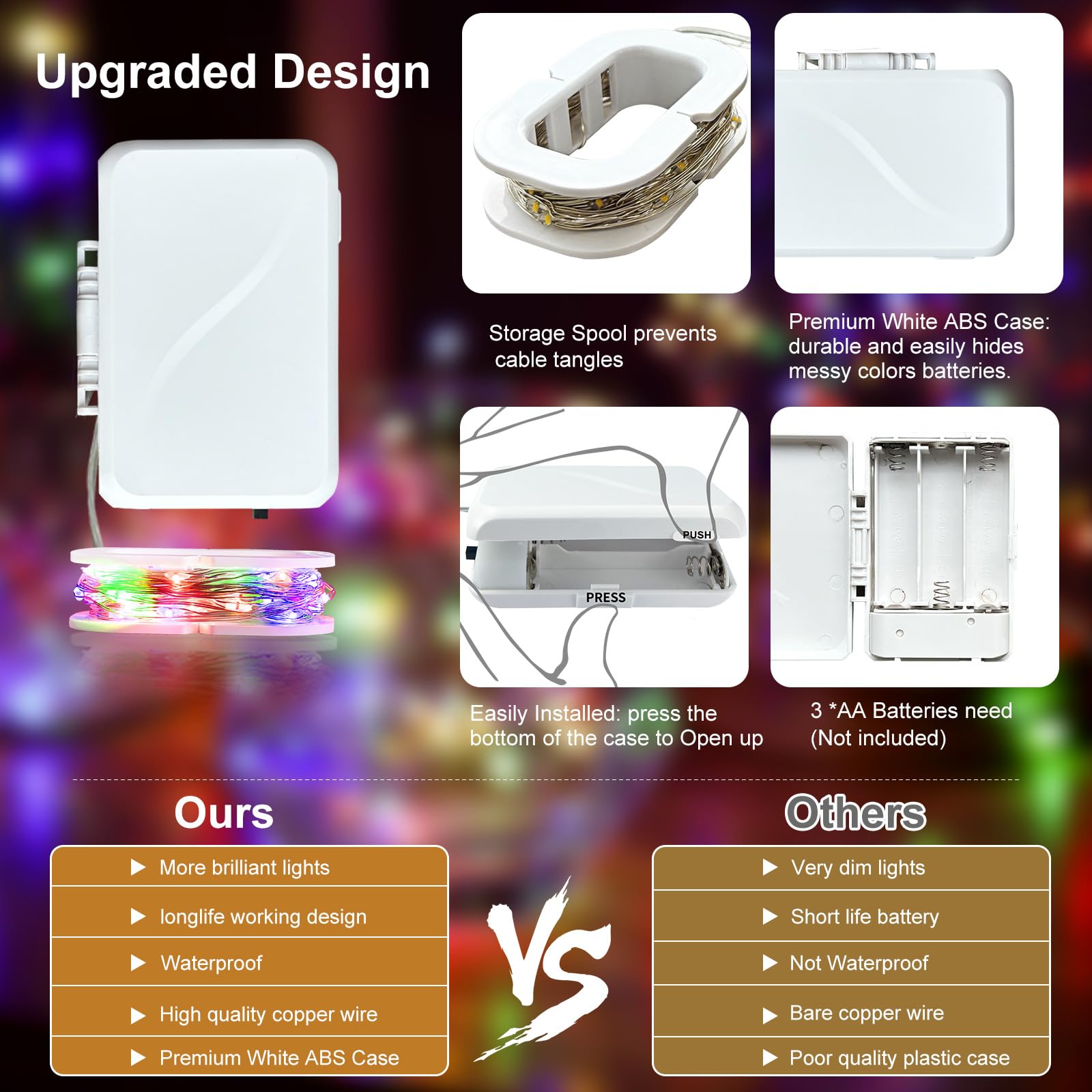 - Easy to Shape and Energy Efficient: Flexible copper can easily create the shape you want, you can bend the copper into a heart shape or pentagram, you can wrap your outdoor fairy lights around tree trunks or gazebos. These LED fairy lights are powered by very low voltage batteries 3 AA batteries (not included), making the copper wire lights very safe to touch, won't overheat after hours of use, durable and safe to use.