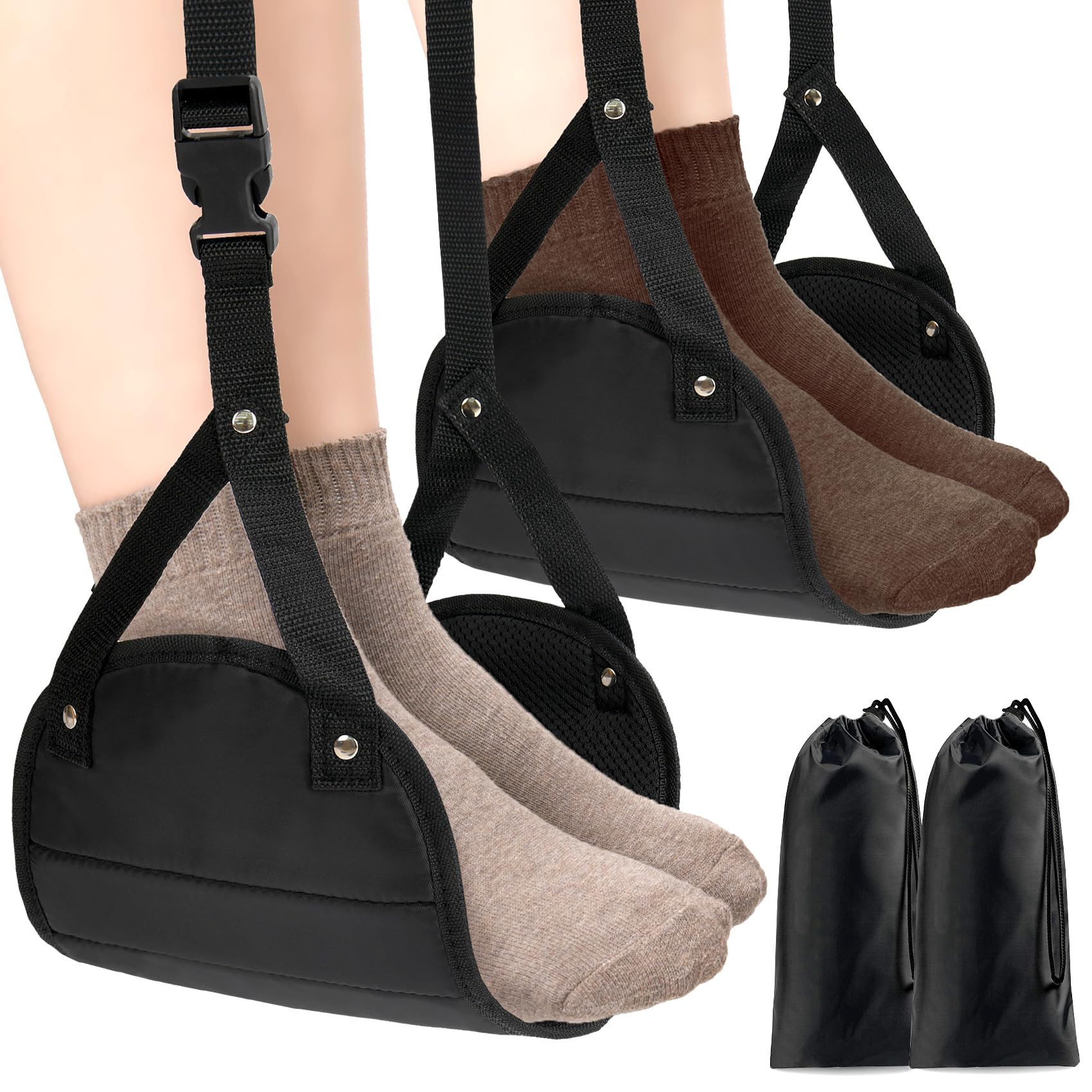 Airplane Foot Rest-2Pack, Airplane Travel Comfort Essentials, Portable Height Adjustable Travel Footrest Hammock Accessories, Relieves Legs Pressure and Lower Back Soreness for Long Trip
