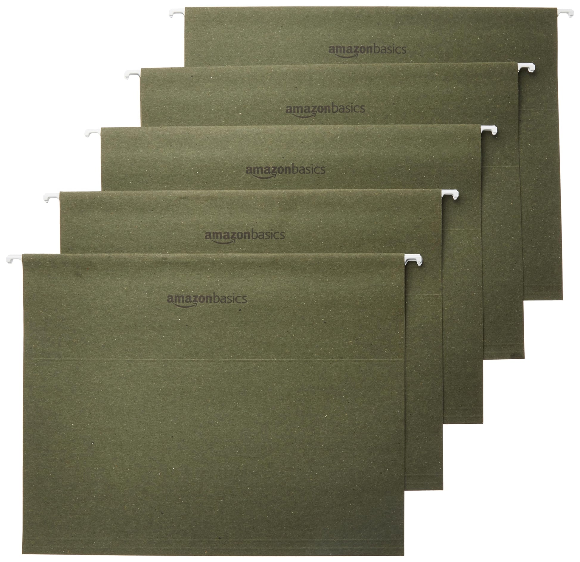Amazon Basics Hanging Organizer File Folders for Efficient Filing, Sturdy, Adjustable Tabs, Letter Size, Pack of 25, Green