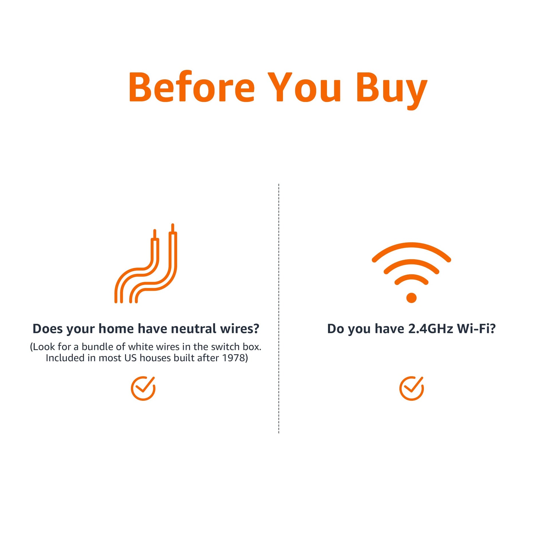 Amazon Basics Single Pole Smart Switch, Works with Alexa, Neutral Wire Required