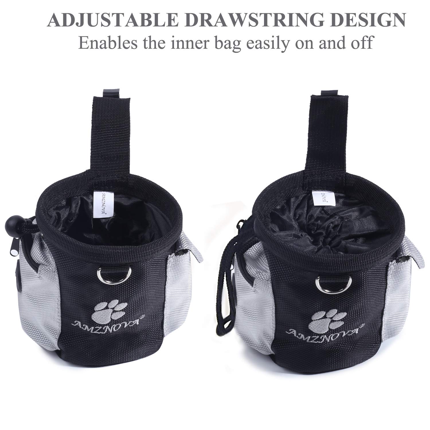 AMZNOVA Dog Treat Bag, Puppy Training Pouch, 3 Cups Animal Walking Snack Container Best Hiking Toys Pack Dispenser Carries with Waistband, Black
