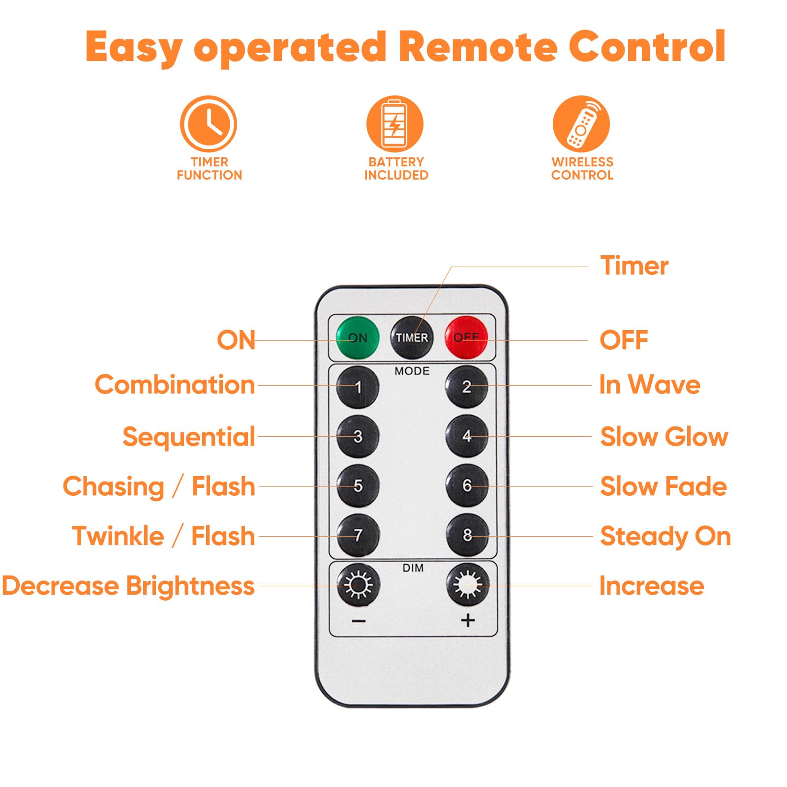 - Remote Control Convenience: Easily switch between 8 unique lighting modes and adjust brightness with the included remote; features timer for automatic 6 hours on, 18 hours off cycle.