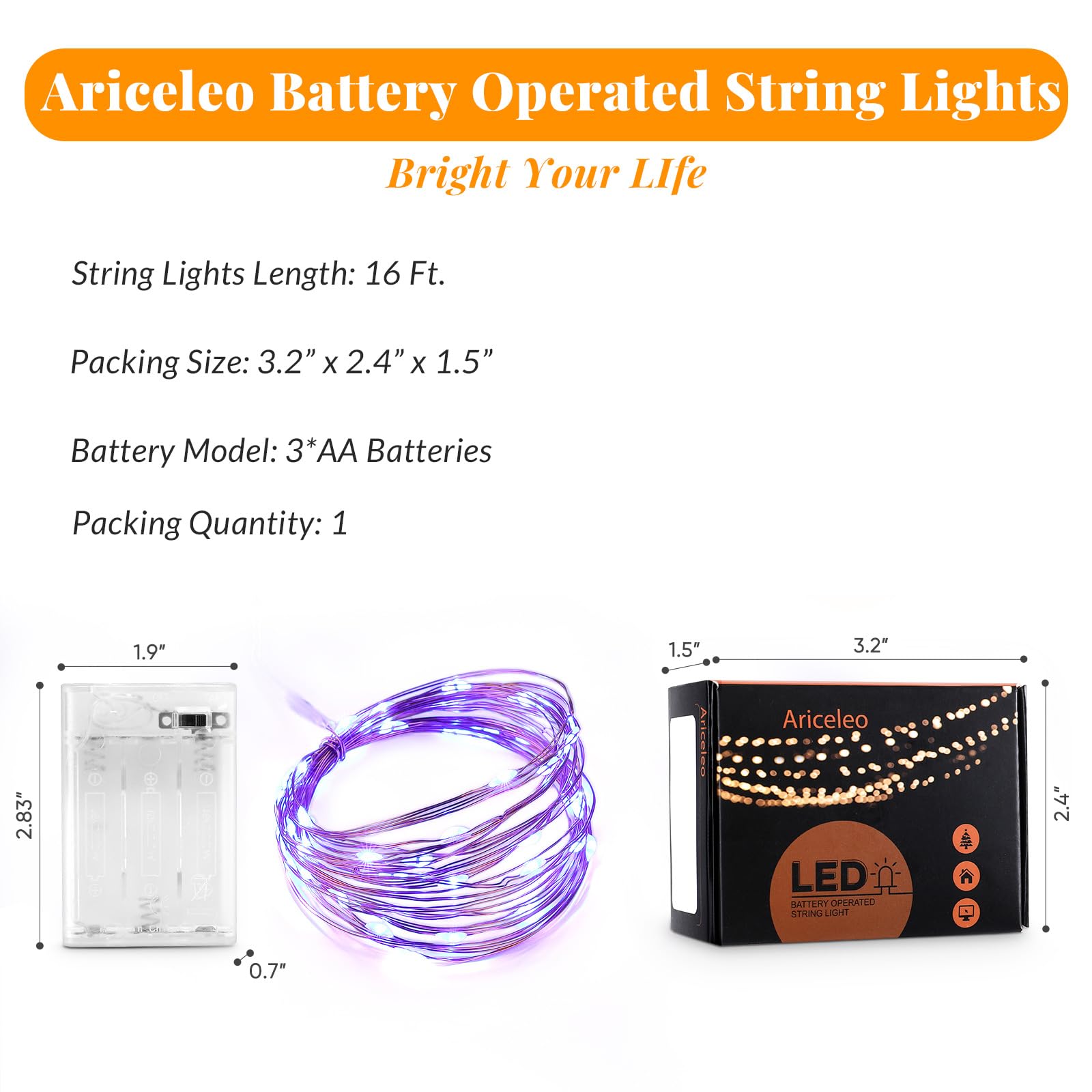 - *SUPER BRIGHT 50 LED STRING LIGHTS: These Best 50 LEDs Micro LED Battery Operated String Lights Lamp are perfect for using as a lighting addition to any decorative project. delicate copper wire hosts 50 very small LED bulbs that are about size of the rise grain and are intensely bright. With steady 360 degree viewing angle they illuminate in every direction.