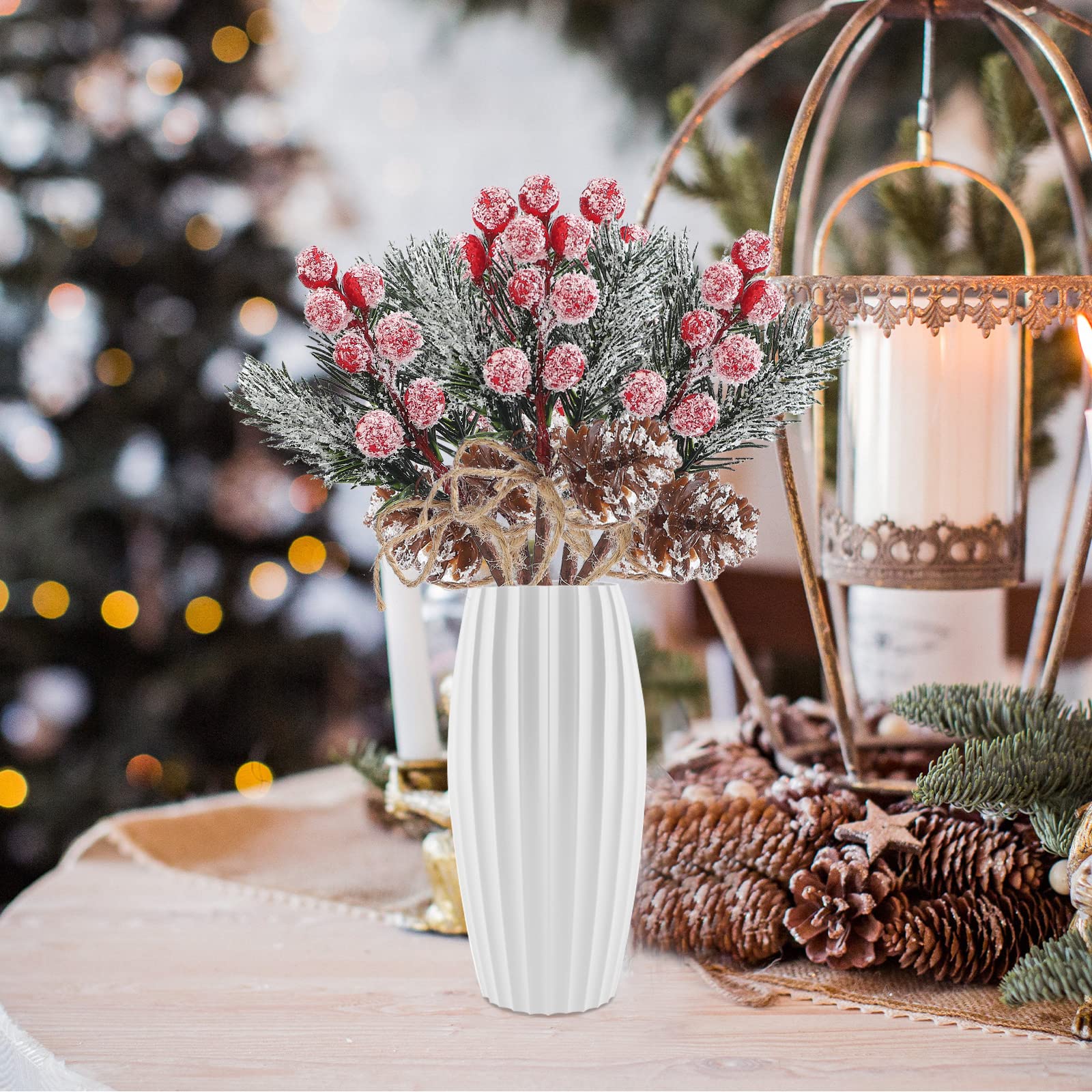 - HIGH QUALITY: The flocked red berries fruits are made of premium foam material, with pine cone and plastic pine needles, durable and lightweight, not fading and not easy to break