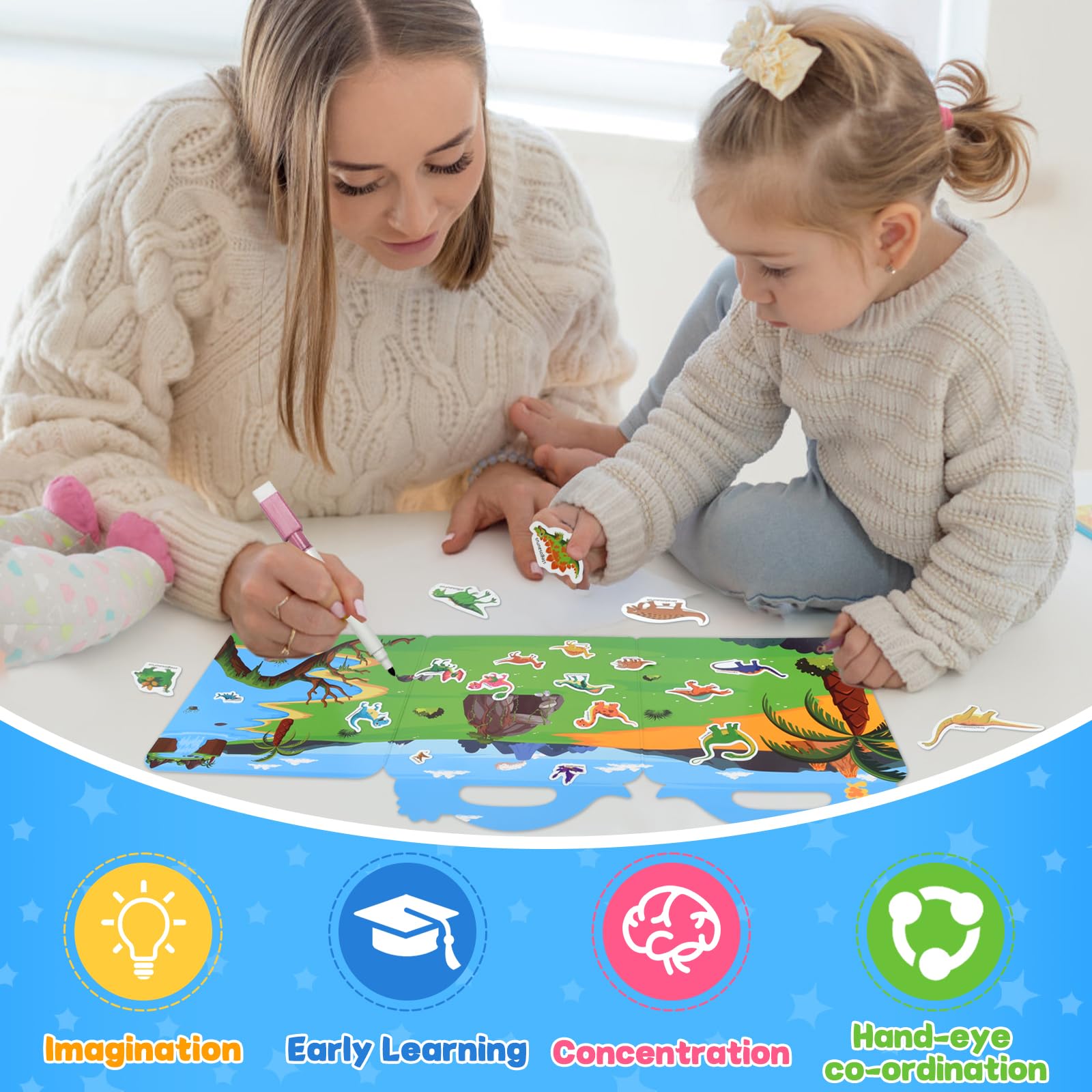 - 【Folding Scenes Book】The sticker books can be expanded into larger, richer and more interesting game scenes for children to imagine and create unlimited stories.Sticker games have lots of pretend-play fun. Get kids to reduce their electronic time to protect their eyes and necks.