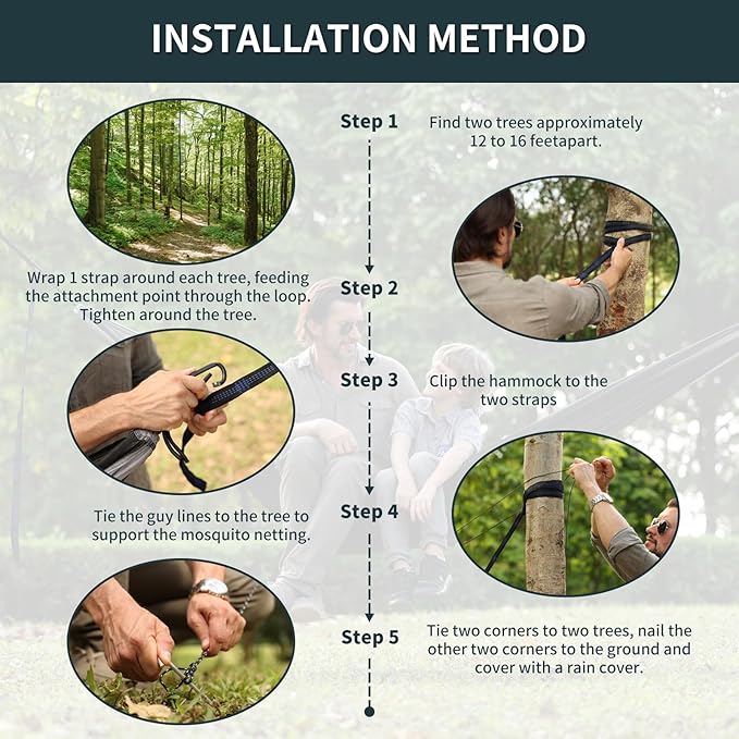 - 【BREATHABLE & PREMIUM NET】: Do you hate being bitten by mosquito while camping? High density nets can effectively protect you from those creepy crawlers. Breathable and ventilated mesh allows you to safely enjoy your camping time. Net and hammock are connected by 2 quality zippers