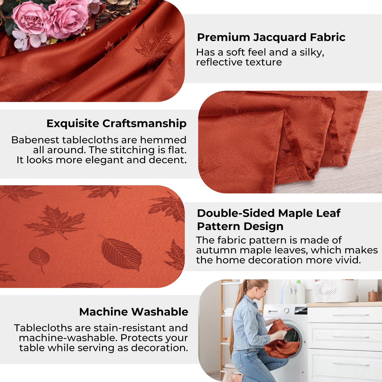 - Elegant Maple Leaves Design: The autumn tablecloth has a Jacquard pattern is designed by fall's maple leaves. The designer has integrated beautiful autumn maple leaf elements with luxurious polyester fabric to create a perfect autumn atmosphere for all your dining events