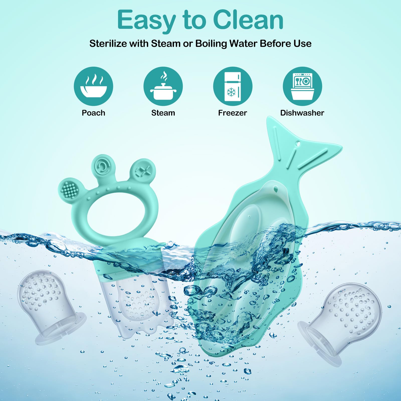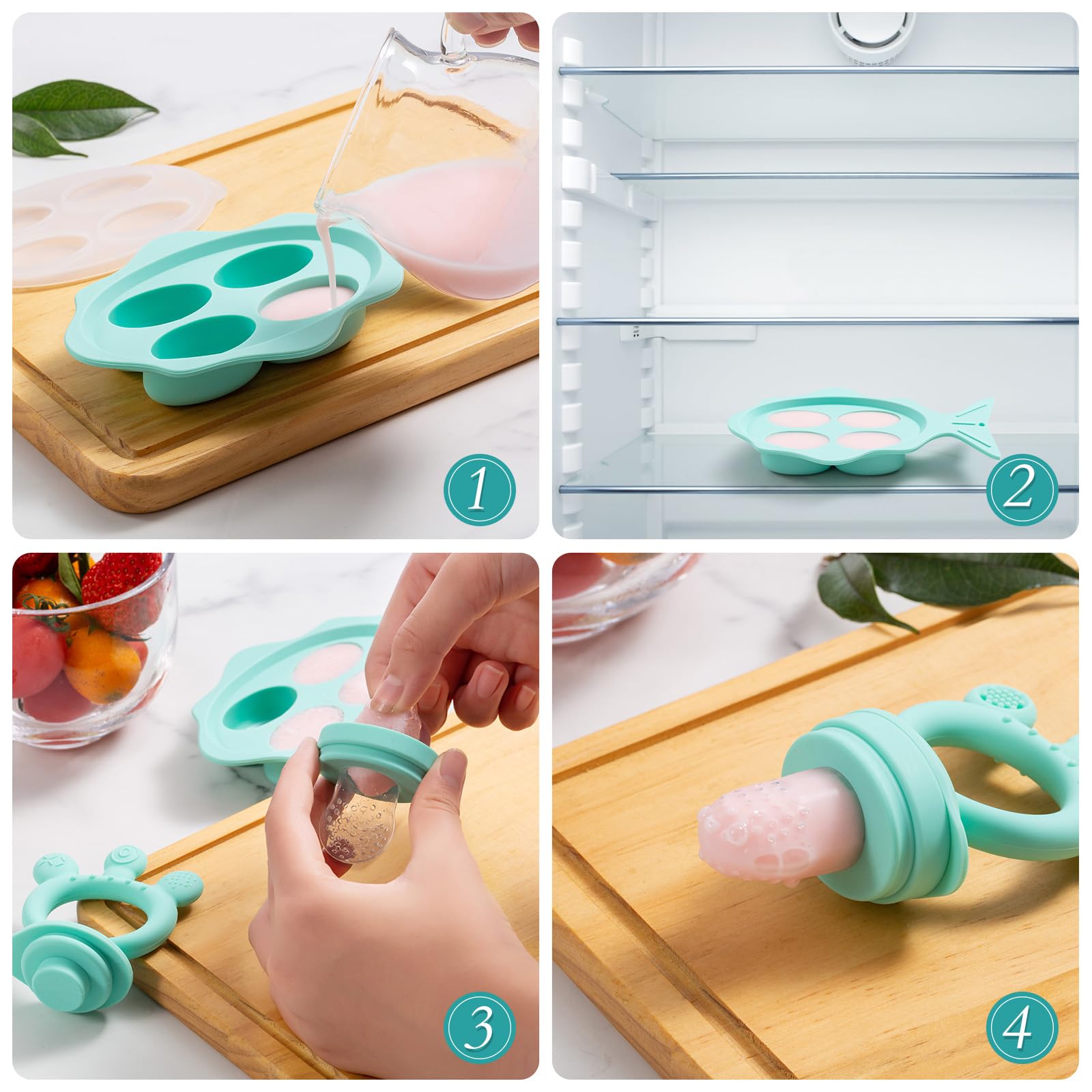 Baby Fruit Feeder, with Mini Freezer Tray, Silicone Teething Toys, Breastmilk Popsicle Molds for Baby Teething Relief, Includes 4 Mesh Pacifier