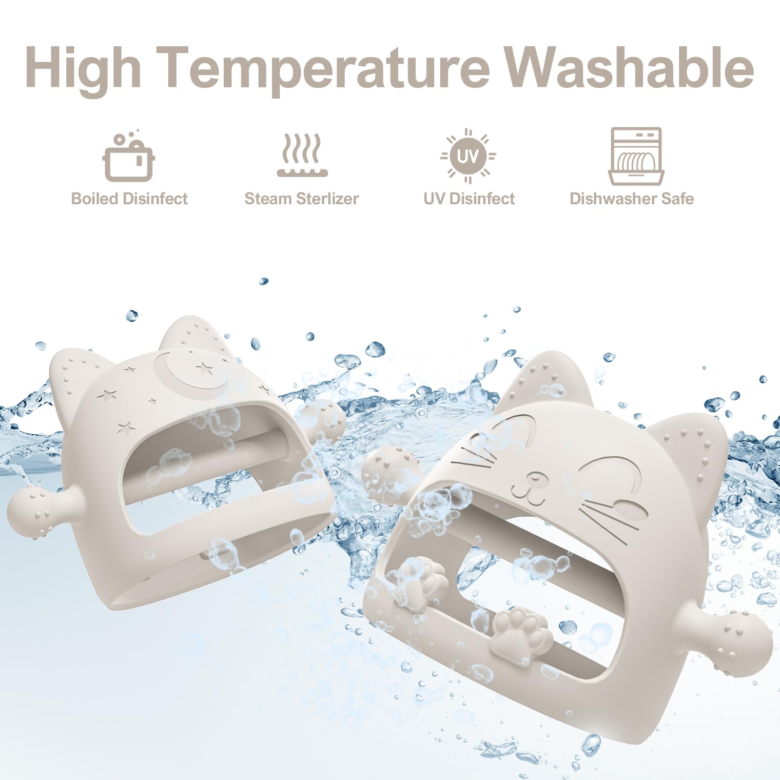 Baby Teether-Teething Toys for Babies 0-6 Months-Silicone Teething Mitt with Cute Cat Shape Baby Toys 6 to 12 Months,Newborn Essentials Must Haves for Teething Relief,Ideal Baby Shower Gifts for Moms