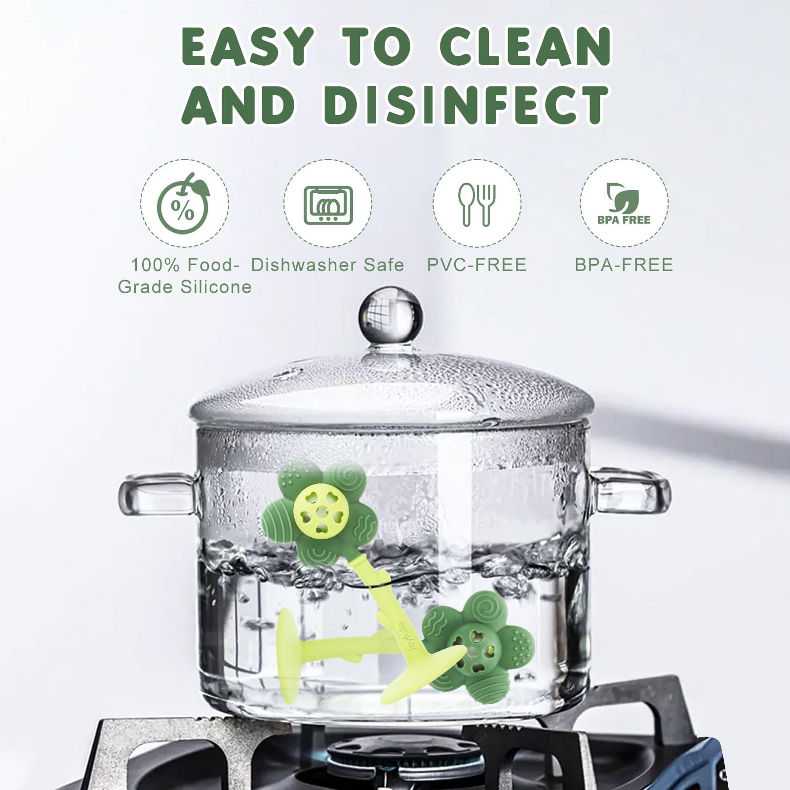 - SAFE & NON-TOXIC MATERIAL: Joyfulia baby teething toy crafted from high-quality, food-grade silicone that is 100% BPA-free, phthalate-free, and free from any harmful chemicals. Silicone teethers for babies designed to be gentle on your baby's sensitive gums, offers multiple textures for all new teeth typesand peace of mind knowing it’s completely safe for your little one to chew and play with.