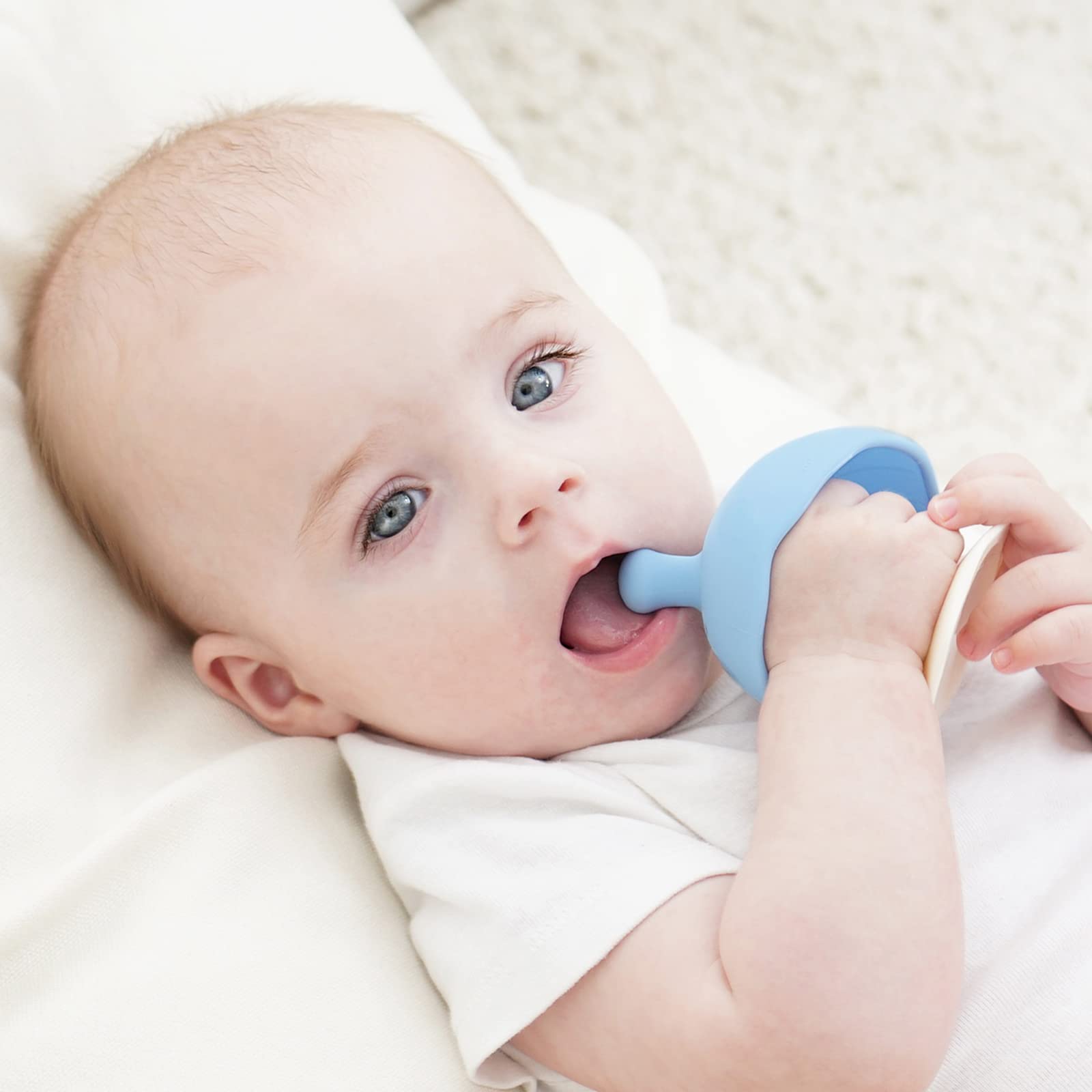 Baby Teething Toys for 3-12 Months+,Silicone Mombella Baby Teether with Suction Base,Soft & Easy to Grasp for Teething Relief,Safe & Comfortable Teether Toys for Sucking Needs,BPA Free,0011 (Blue)