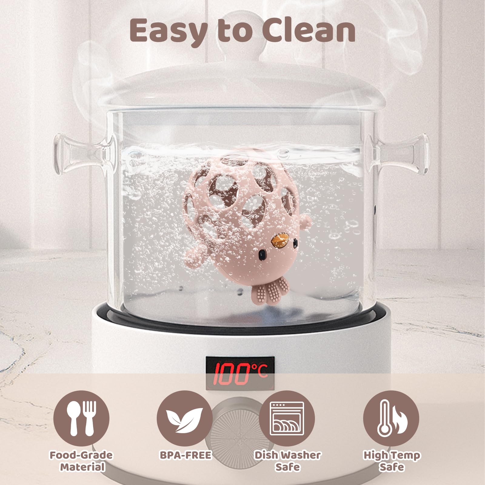 Baby Teething Toys Silicone Teethers - Babies Toys Chew Toys Food Grade Silicone for Sucking Needs, BPA Free for 0-6 6-12 Months(Pink White)