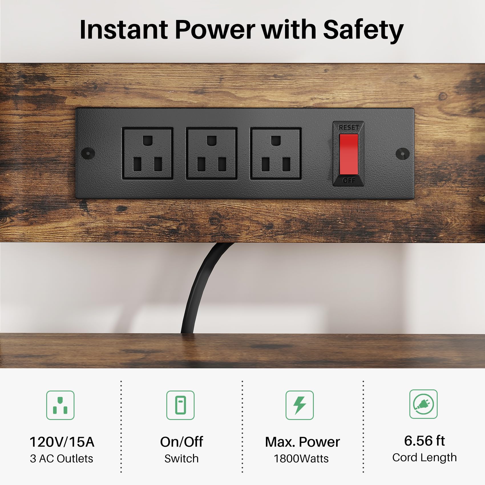 - [One-Press Power Outlets]: SNTD' kitchen storage rack has 3 power outlets and an air switch—it's your socket butler for coffee maker, toaster, and blender. One flip powers all three appliances—no more bending to yank plugs or taming cords. Like a trusty sidekick, it lets you tune into bacon sizzle and coffee hum while savoring a stress-free breakfast