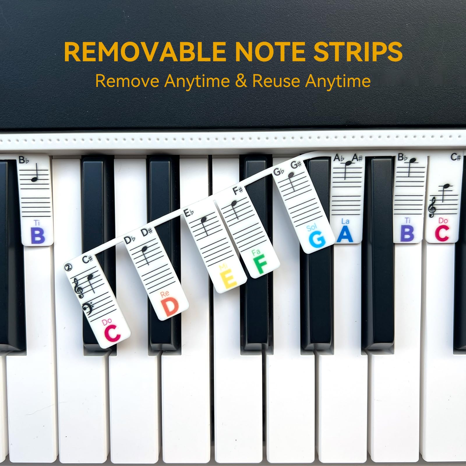 BEATBIT Piano Note Strips with Solfege (Do Re Miβ¦), Fit 61/54/49 Key Piano Learning, Removable Piano Keyboard Stickers