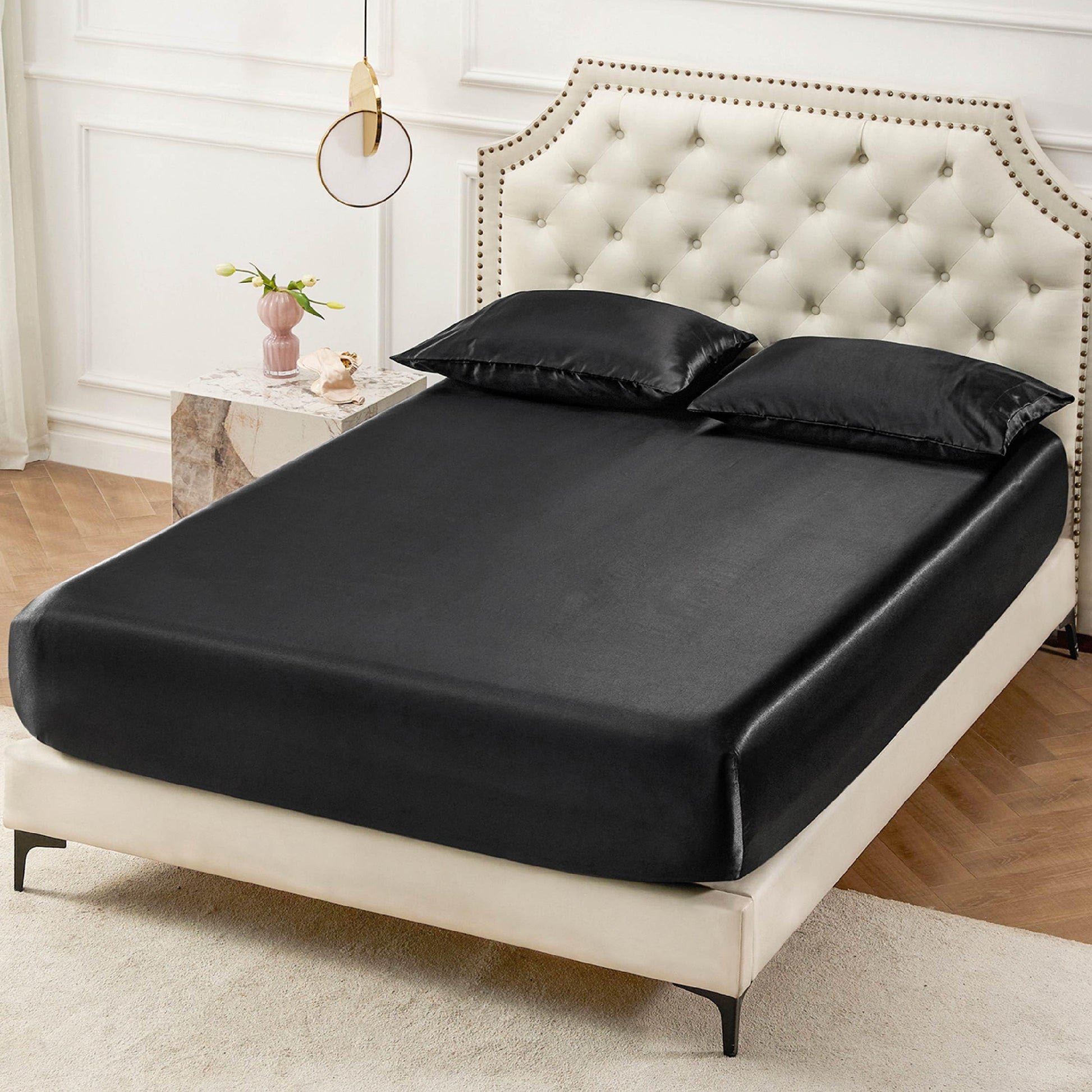 Bedsure Satin Fitted Sheet Only Twin Size - Black Silk Bed Sheet, Luxury & Ultra Soft, Non-Fading & Wrinkle Free, Good for Skin (Black, 39x75+15 Inches, 1 Piece, No Pillowcases)