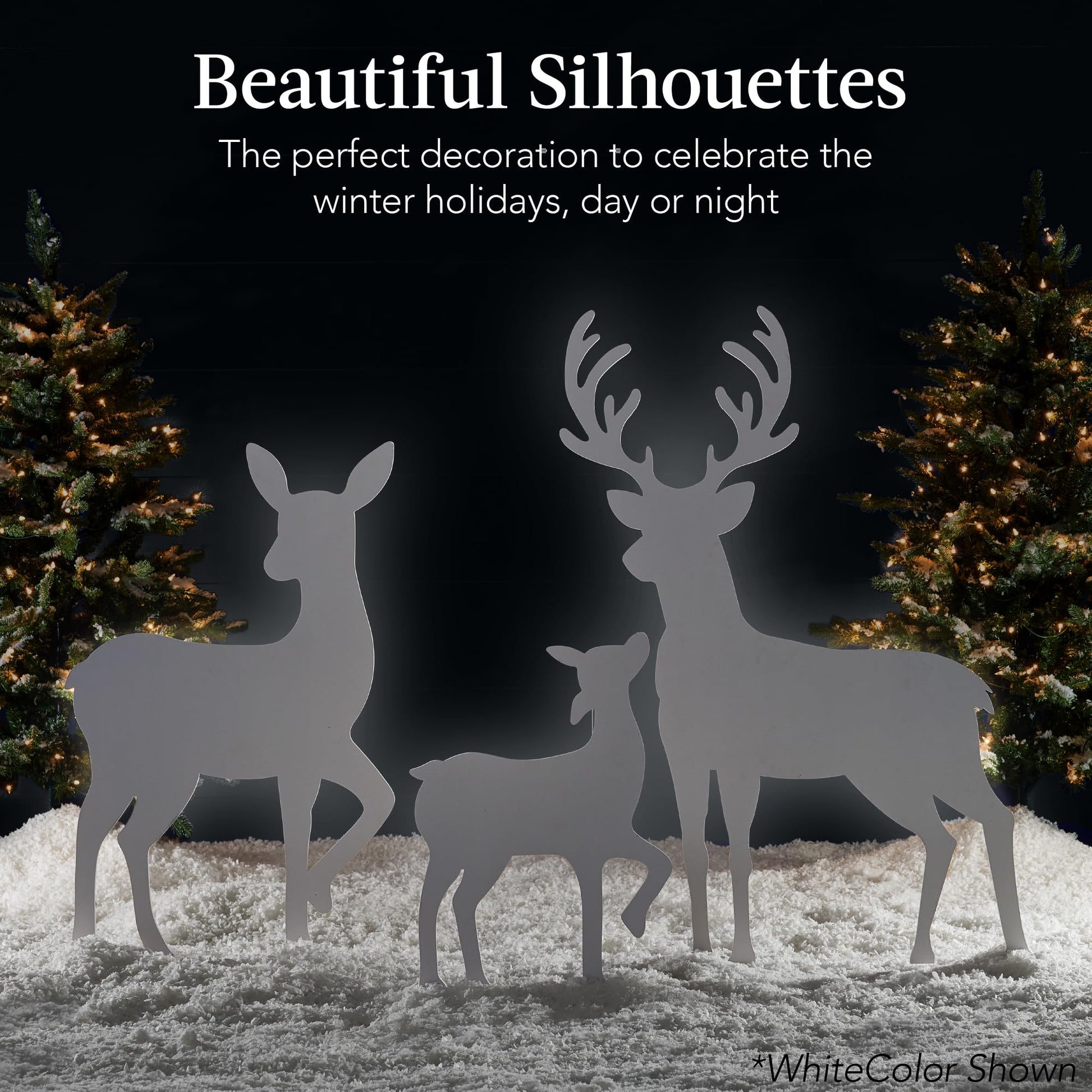 Best Choice Products 3-Piece 46in 2D Deer Family Silhouette Set, Outdoor PVC Christmas Yard Decoration w/Buck, Doe, Fawn, Weather Resistant - Black