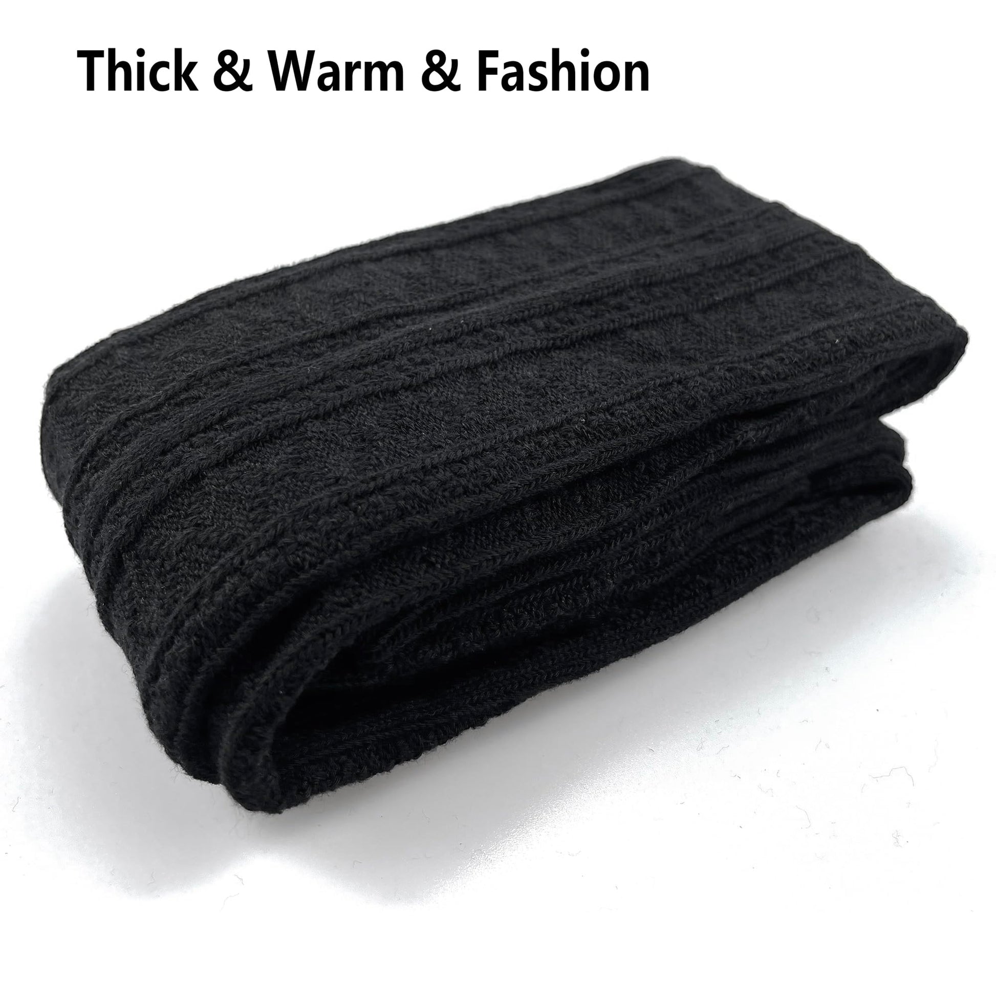 Bestjybt Women Extra Long Thigh High Socks Cotton Knit Over Knee Socks Warm Thick Leg Warmer Boot Stockings (US, Alpha, One Size, Regular, Regular, Black)